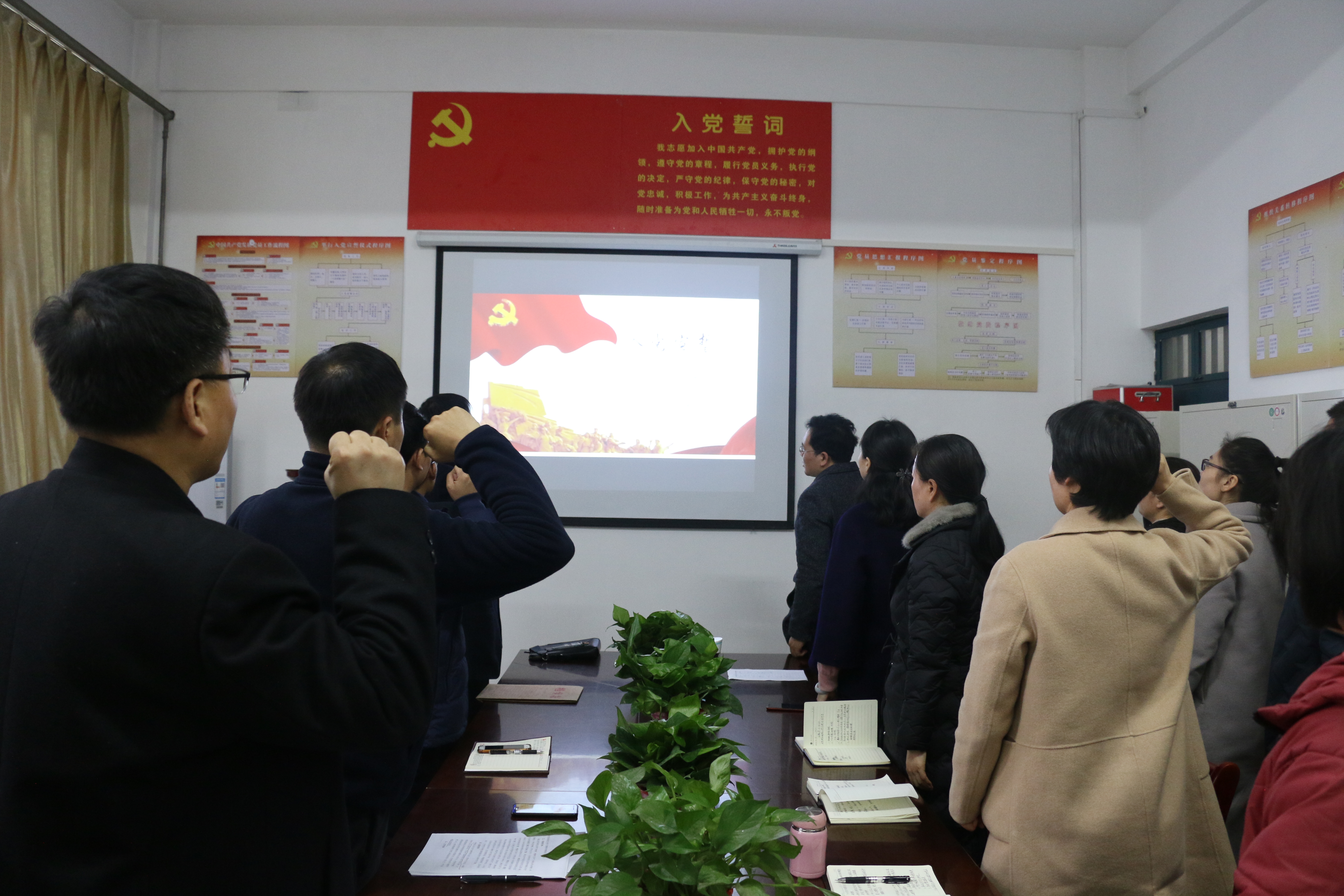 活动最后,全体教工党员重温了入党誓词,缴纳了党费。