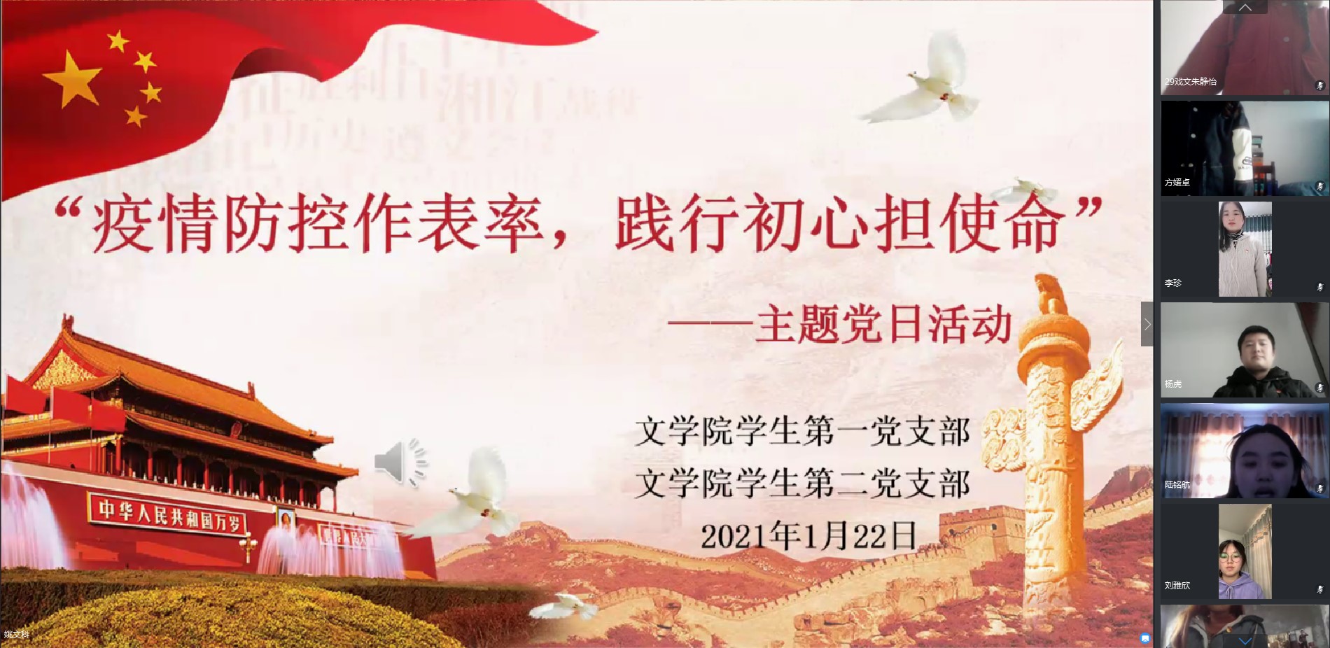 1月22日下午,伟的国际1946bv官网员工第一、第二党支部以线上形式开展了“疫情防控做表率,践行初心担使命”主题党日活动。主题党日活动由员工党支部书记薛小品主持。