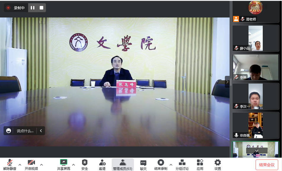 11月30日下午,校纪委书记、监察专员张高峰在线上为2020级汉语言文学专业3班员工讲授“追梦•领航”思政课,公司党委书记申自强主持。