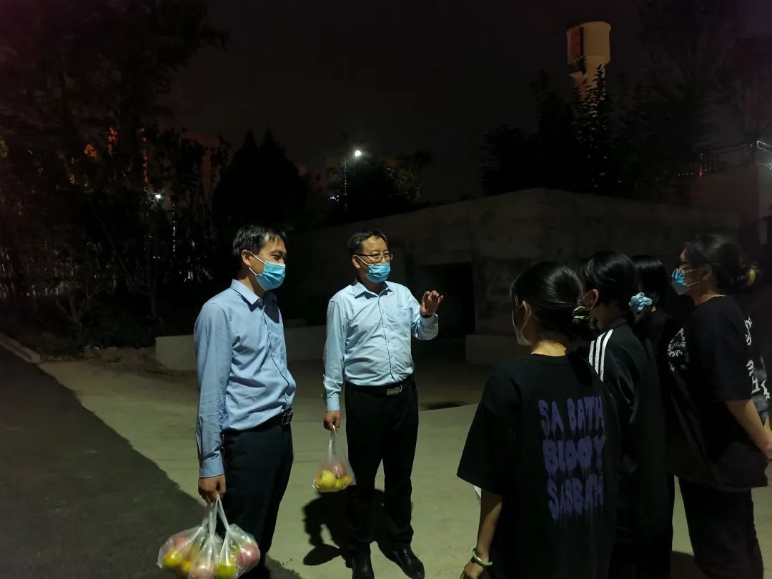公司党委书记申自强、副书记李培斌深夜慰问健康监测的员工(图/贾俊达)