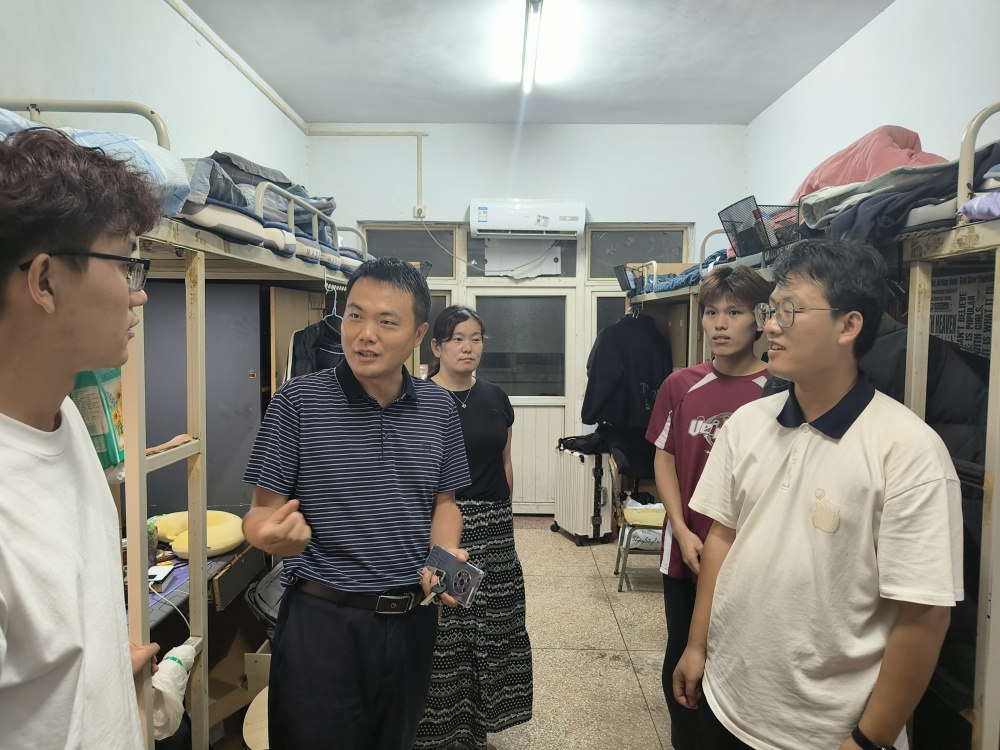 在走访过程中,申自强与开学返校的同学们亲切交流,详细询问大家开学准备情况,深入了解他们在学习生活方面的困难和问题,并重点围绕学业发展、心理调适、宿舍安全、卫生环境与大家进行了交流和强调。同时,辅导员老师们还逐间检查了宿舍内用电安全等方面的情况,助力营造安全、整洁、和谐的住宿环境。