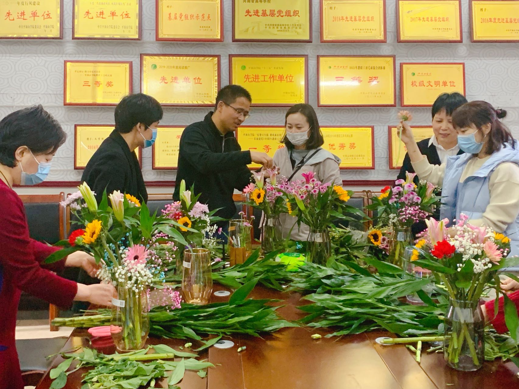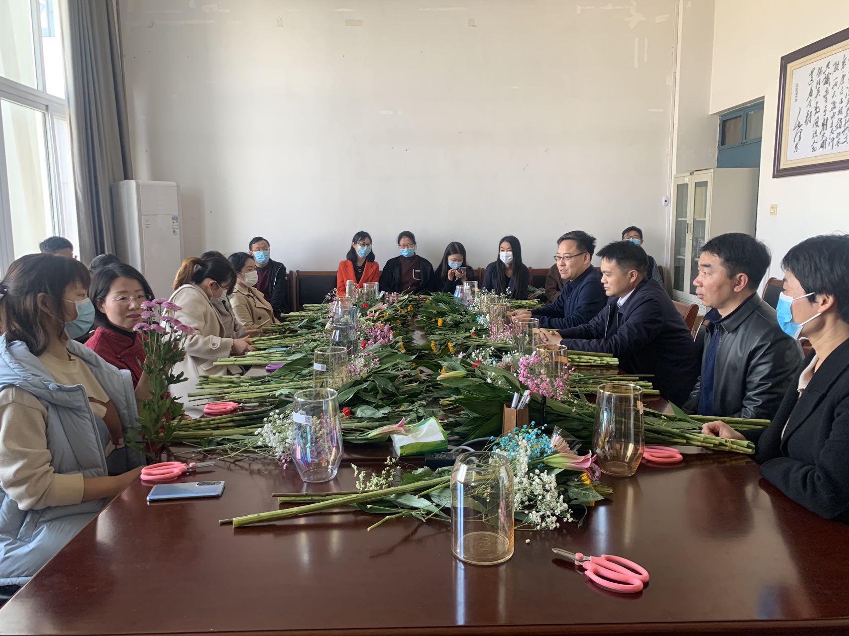 为响应校工会号召,丰富女职工的文化生活,增进教职工间沟通与交流,3月10日下午,伟的国际1946bv官网分工会在1321会议室举办主题为“做智慧女性,创美丽生活”的创意插花活动。公司党政领导班子及全体教师参加活动。