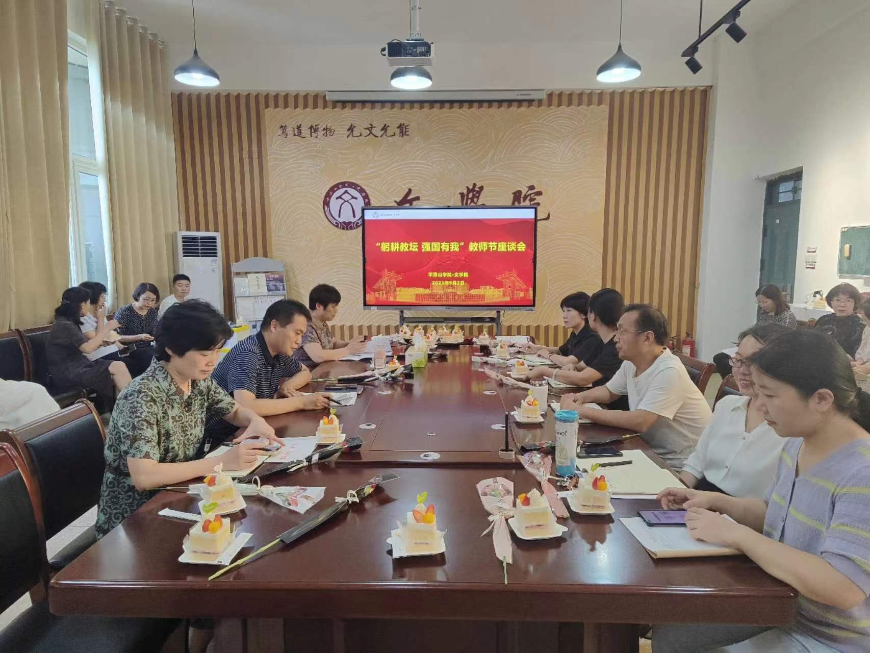 此次座谈会分为教师代表发言、为教师献上蛋糕和鲜花、课堂教学微课展示三个环节。在教师代表发言环节,卢淑芳、李东晓、赵星、马继文、张焕玲五位教师分别畅谈自己的教学感悟。大家一致认为教师是一个幸福和令人骄傲的职业,教育是国之大计、党之大计。他们表示,作为一名教育工作者,应该始终牢记为党育人、为国育才的神圣使命,立德修身,潜心治学,履行教师职业道德、承担岗位职责,做甘为人梯、潜心育人的仁爱之师,做影响和带动员工为学、为事、为人的“大先生”。卢淑芳老师分享了汉语国际教育专业发展的总体安排,李东晓老师阐述了写作系列课程整体规划,赵星老师介绍了戏剧影视文学教研室的特色教研活动,马继文老师交流了创新员工管理工作的方式方法,张焕玲老师介绍了即将举办的诗词大赛的总体安排。