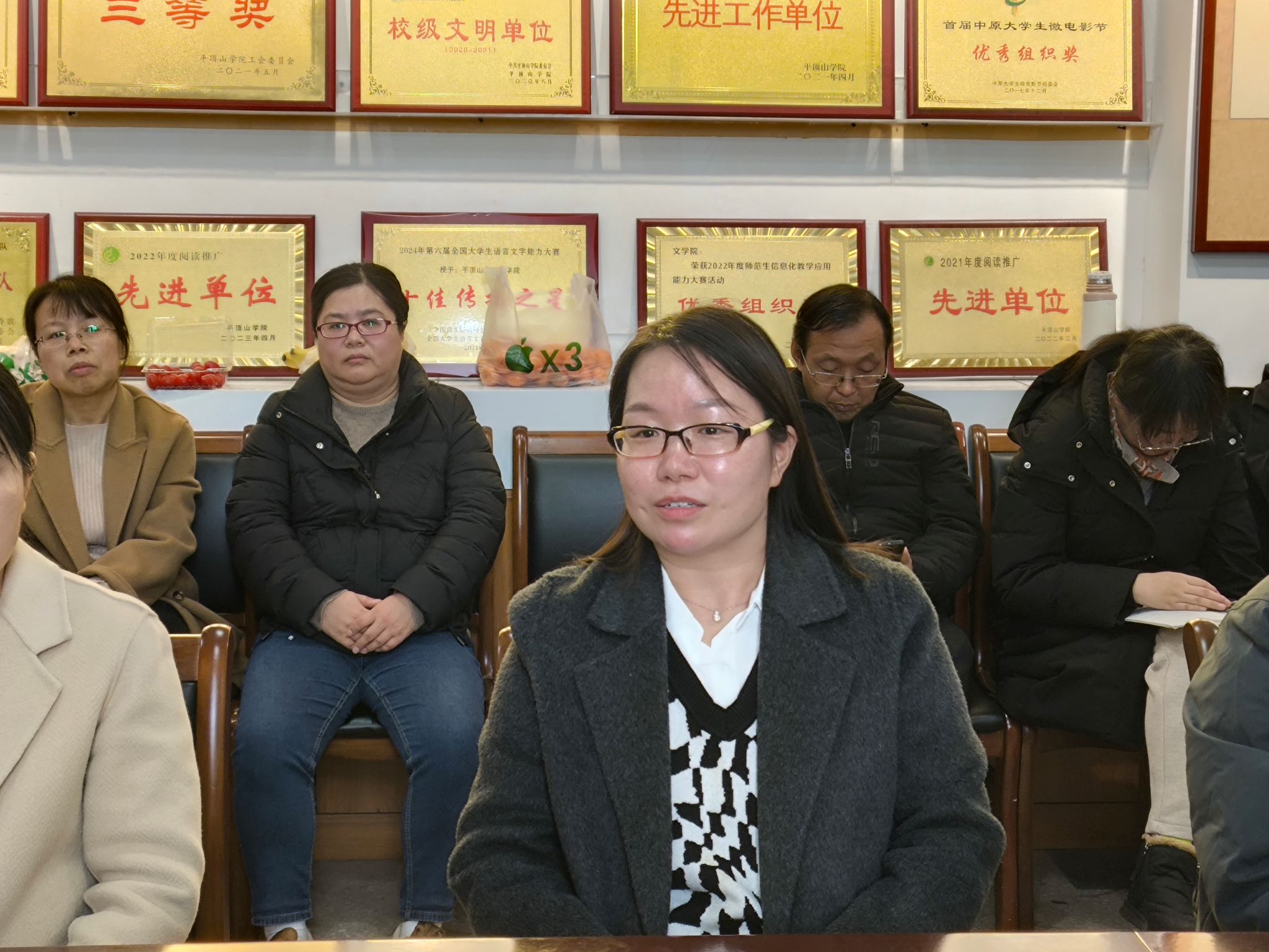 座谈会上,结合刚刚结束的公司产品审核评估工作,刘亚科、岳上铧、卢淑芳、卓俊科、陈一鑫等五位在审核评估工作中被听课或是被抽调材料的教师作为代表依次交流和分享了审核评估工作中的经验和体会。