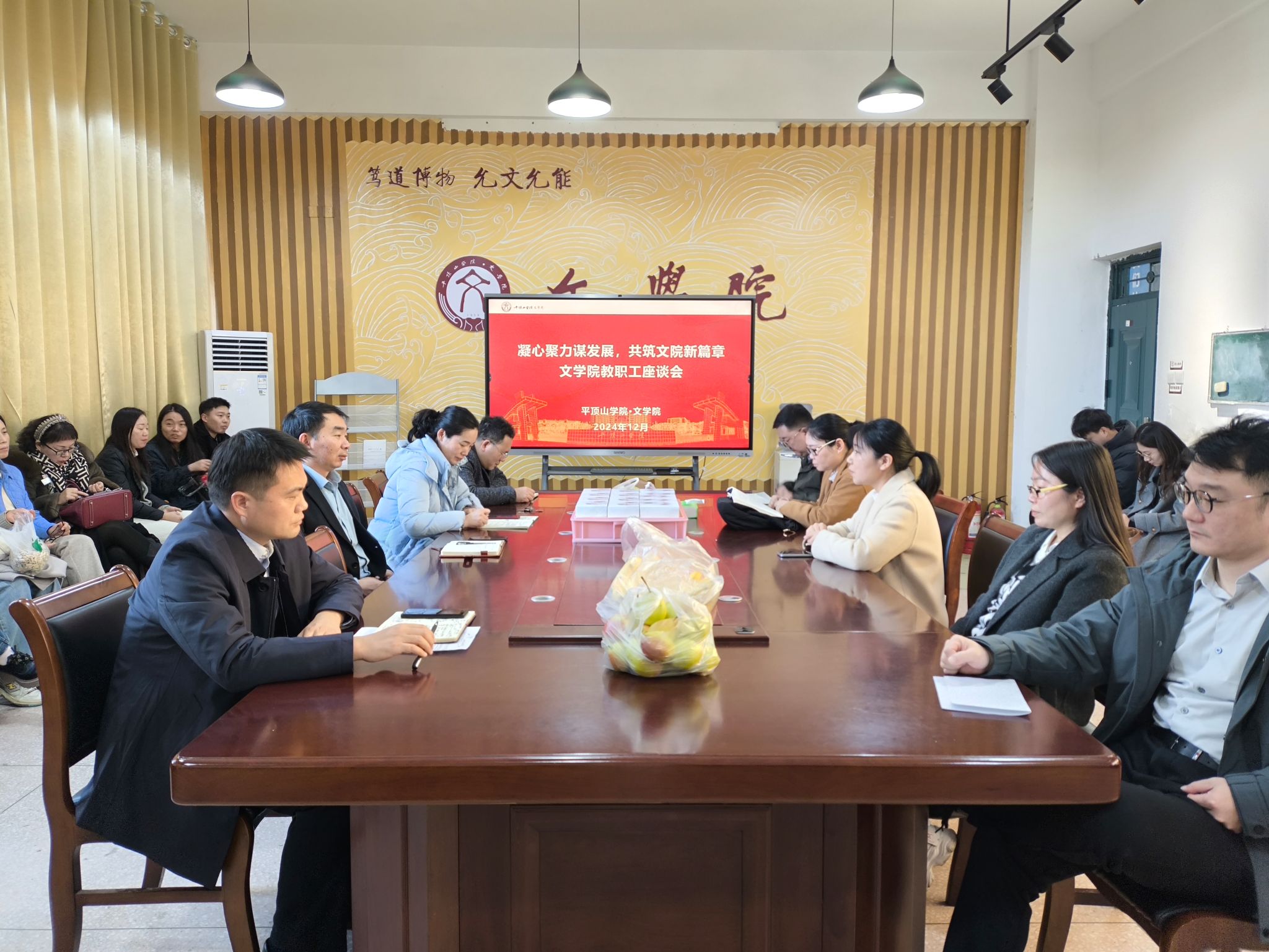 12月5日下午,伟的国际1946bv官网分工会在1301会议室举办“凝心聚力谋发展,共筑文院新篇章——伟的国际1946bv官网教职工座谈会”,伟的国际1946bv官网全体教职工参加此次座谈会。