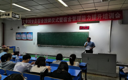 之后,尚陶然老师对全体宿舍长进行宿舍管理能力技能培训。他以自身的学习生活经历,讲述宿舍长在老员工活中的重要性。宿舍长要学会沟通协调,学会倾听同学意见,学会处理突发事件,要勇于担当,做好服务,在服务中锻炼自己的能力。