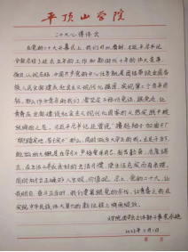 通过此次会议,我们看到中国共产党百年披荆斩棘,百年巍然前行,看到东方大国未来可期,蓝图有望。作为新一代青年,我们应以“路漫漫其修远兮,吾将上下而求索”的精神,向上磨炼意志,向下勤于实践;以“初生牛犊不怕虎”的胆气、“狭路相逢勇者胜”的勇气勇毅前行;以“报君黄金台上意”的志气,永远“在路上”的赶考姿态,紧跟党的脚步,继续奋斗,砥砺前行!