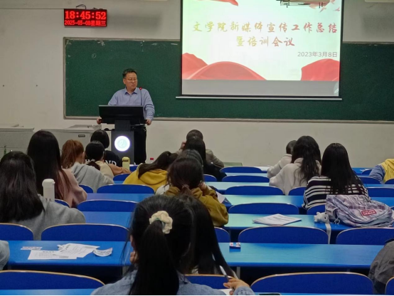 李培斌为同学们做指导讲话。他强调员工工作者要提高政治站位,把宣传工作做好,做好思想引领;要严格要求自己,把握锻炼机会,提升工作能力;要把握时事动态,强化技能培训,完善运行机制;要注重新闻时效,创新新闻形式,提升宣传影响力;要及时对接负责老师,指导提升宣传推文质量。希望各班宣传委员也要做好基层宣传工作,同时新媒体中心要与团学会各部门做好配合,及时宣传团学工作,要做到观新闻可知公司动态,读新闻可促思想教育。