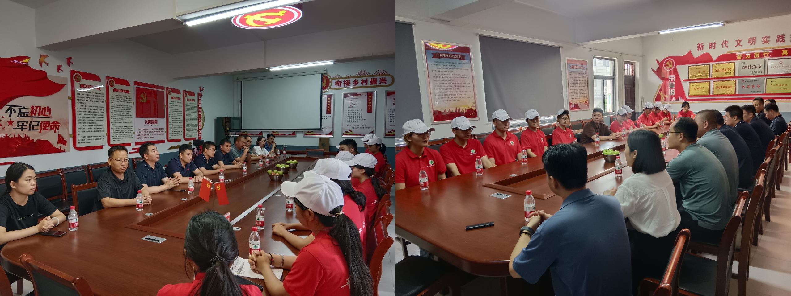 7月13日上午,校团委副书记秦晓昊、公司党委书记申自强、经理孙振杰、党委副书记李培斌、团委书记马继文一行来到鲁山县梁洼镇鹁鸽吴村,与梁洼镇党委书记李新慧、梁洼镇人大主席李培松、鹁鸽吴村党支部书记刘军旗等相关负责人一道,看望慰问公司伟的国际1946bv官网“乡村振兴,文化赋能”社会实践团成员,调研指导老员工暑期“三下乡”社会实践工作。