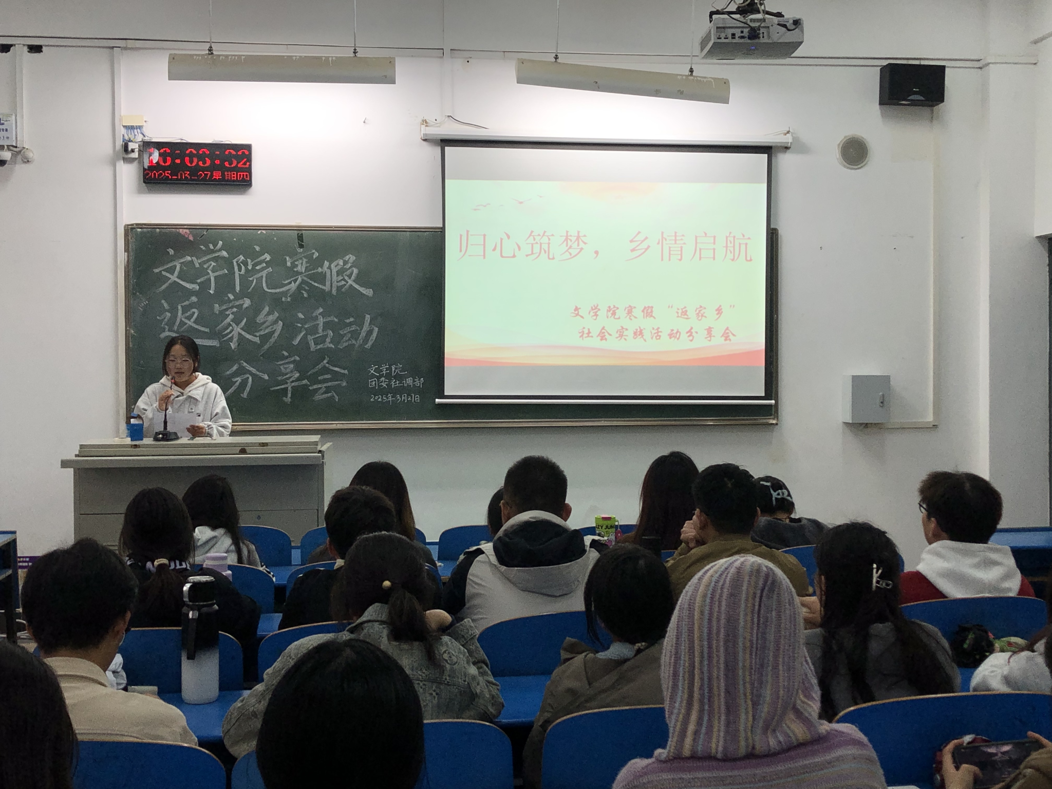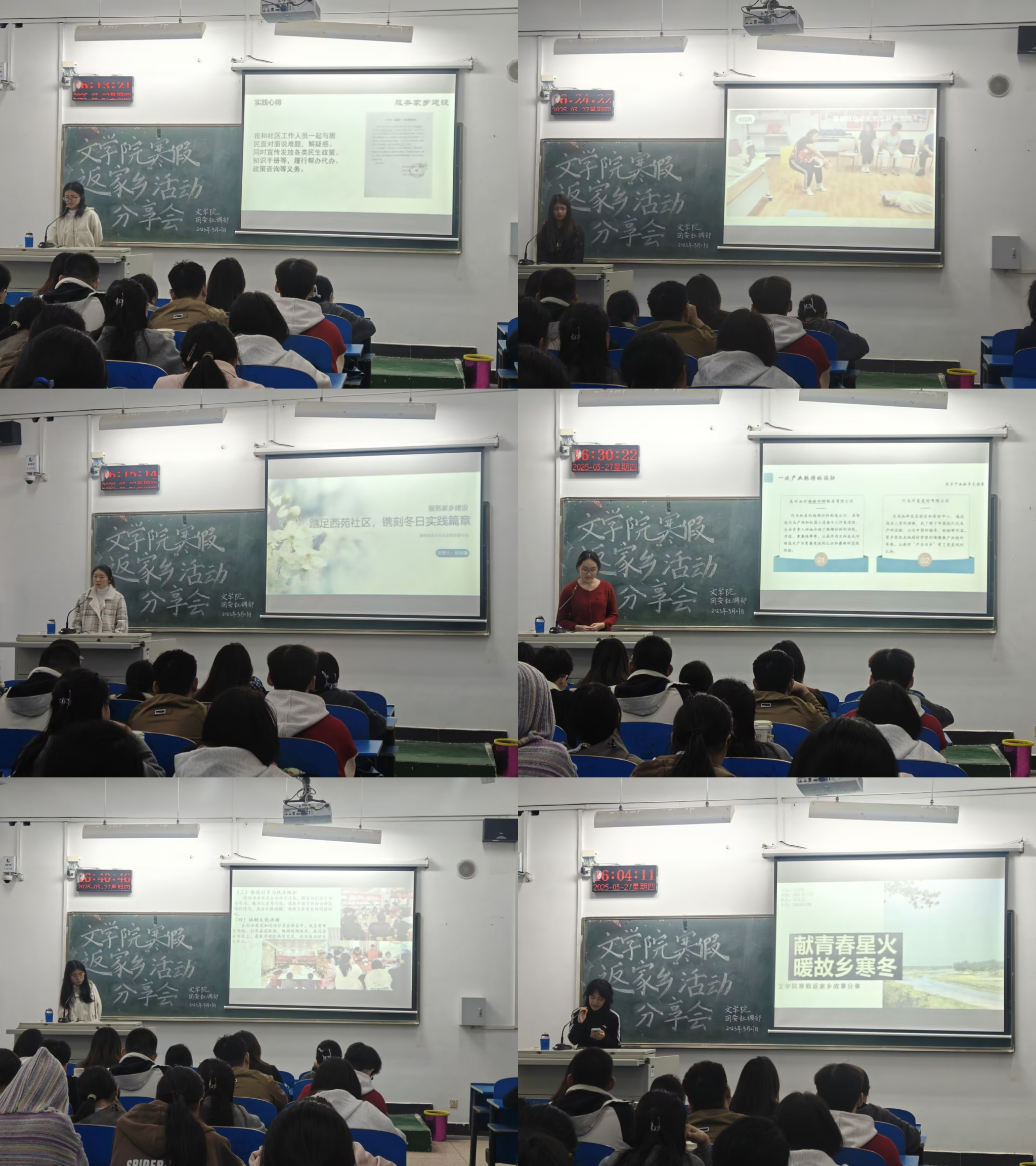3月27日下午,伟的国际1946bv官网团委在1304教室开展了 2025年寒假“返家乡”社会实践活动分享会,展示员工社会实践成果,交流分享实践经验。