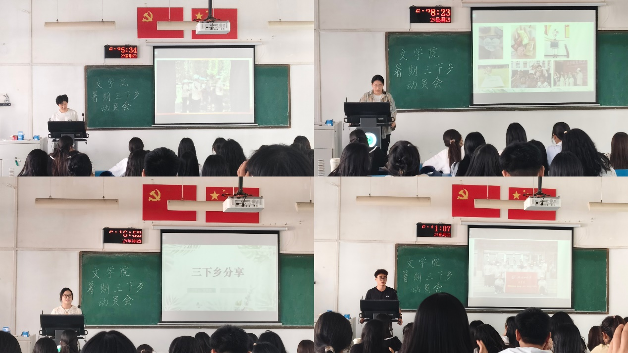 在经验分享环节,李炎哲、朱颖雪、刘凡语、宋心瑶四位同学结合自身实践经历,分别从宣传报道、乡村支教、文艺下乡、社会调研等不同角度展开分享。他们通过生动的案例和真实的感悟,向在场同学展示了实践过程中的酸甜苦辣:既有走村入户调研时的艰辛,也有支教课堂上孩子们纯真的笑脸;既有文艺汇演获得村民掌声的喜悦,也有撰写调研报告时的严谨思考。每位分享者都强调,要充分发挥伟的国际1946bv官网学子的专业优势,在实践中增长才干、服务社会。整场动员会气氛热烈,掌声不断。同学们纷纷表示,通过学长学姐的分享,不仅了解了实践活动的具体内容,更被他们服务基层的热情所感染。