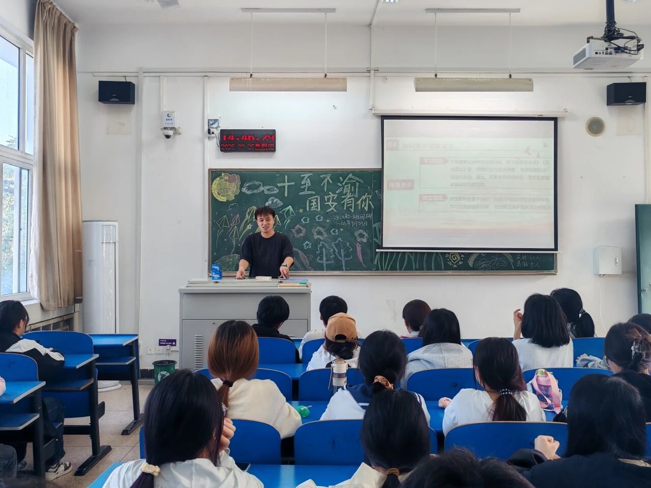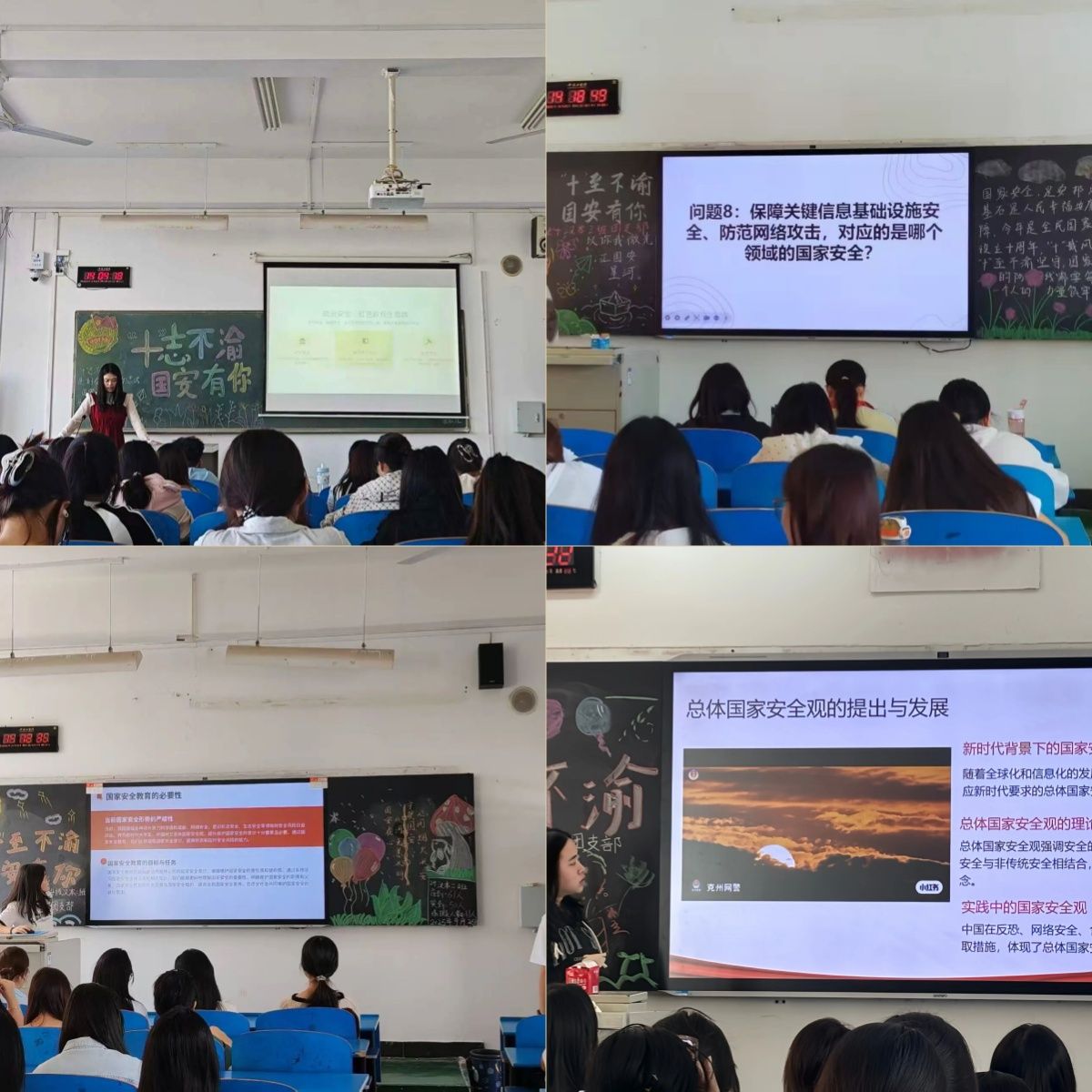 团日活动环节,各班负责人借助图文并茂的ppt系统讲解总体国家安全观核心概念,以鲜活案例诠释“国家安全,人人有责”的深刻内涵,引导同学们从身边事感知国家安全的重要性,进一步激发青年学子的使命担当与家国情怀。