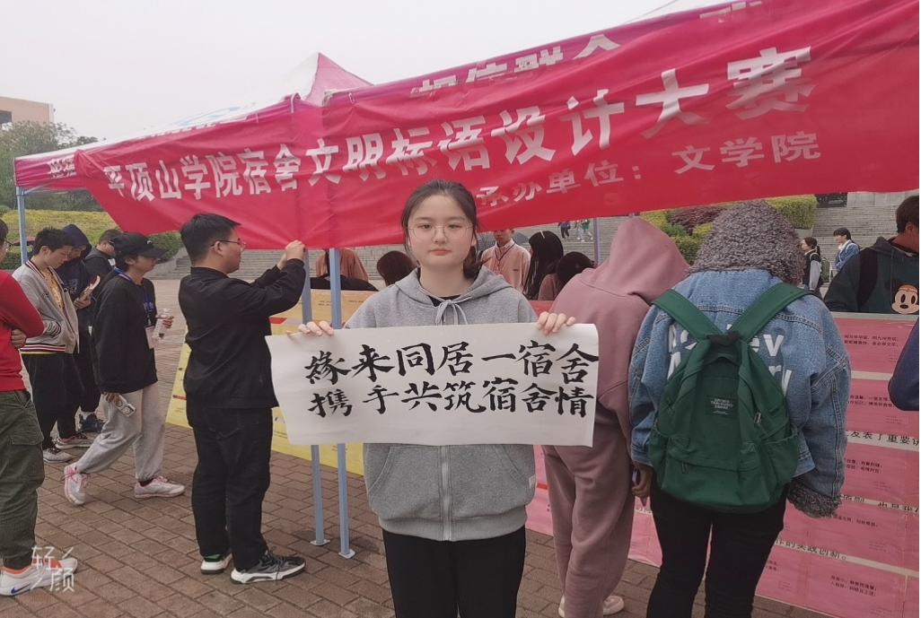 为庆祝中国共产党成立100周年,进一步贯彻全国高校思政会议精神,加强员工宿舍文化建设,营造良好的宿舍氛围,创建安全稳定的学习和生活环境,4月23日,由伟德国际victor1946官网学工部主办,伟的国际1946bv官网承办的“书文明标语,迎百岁华诞”宿舍文明标语设计大赛作品展示在扇形广场拉开帷幕。