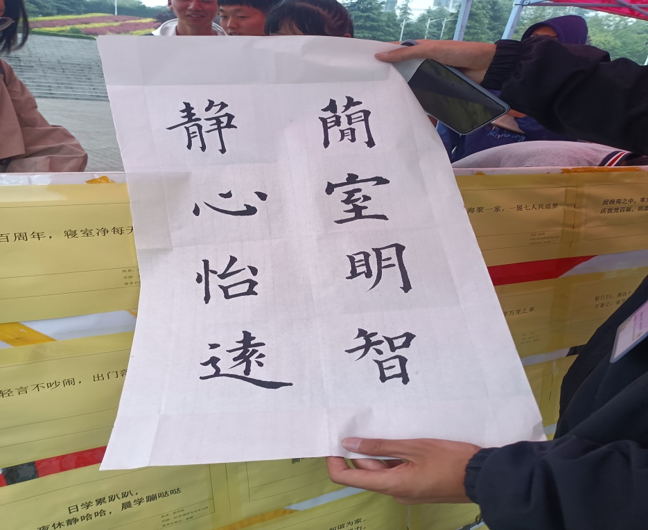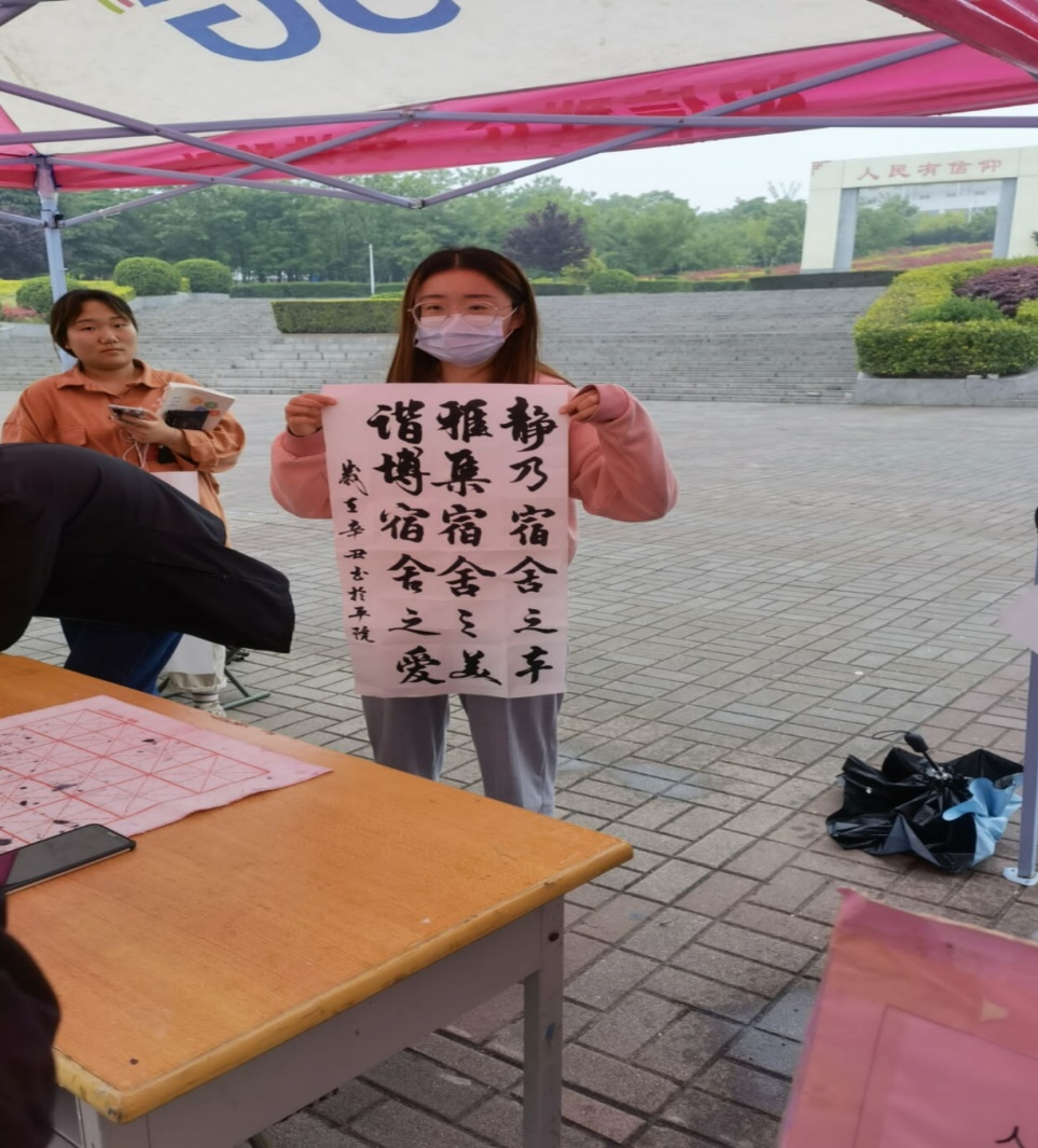 本次活动共收到各个院系参赛作品共237条,由伟的国际1946bv官网老师组成评议小组共评选出80条优秀作品,同时联合书法爱好协会协会在扇形广场进行优秀作品现场书写赠送。在活动开展期间,公司党委副书记李培斌,员工处宿舍管理科科长尚陶然,辅导员顾亚菲老师进行现场指导,广大同学积极参与,纷纷挑选自己喜欢的标语让书法协会的同学们进行书写,还有一些同学对自己喜欢的标语进行亲自书写,许多优秀作品,如:“舍无人灯勿亮,夜已深请轻语,温馨室齐心创”“缘来同居一宿舍,携手共筑宿舍情”“倡宿舍文明,展年华风貌;忆百年党史,书厚德篇章”等作品得到了同学们的高度赞扬,在现场的同学纷纷表示,这次活动不仅让我们体验到了书法的魅力,而且感受到了浓厚的校园宿舍文化底蕴。
