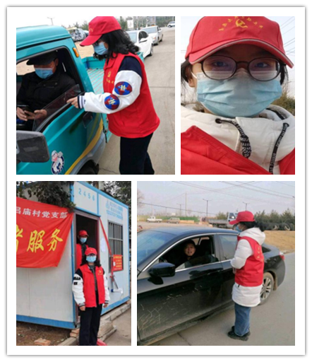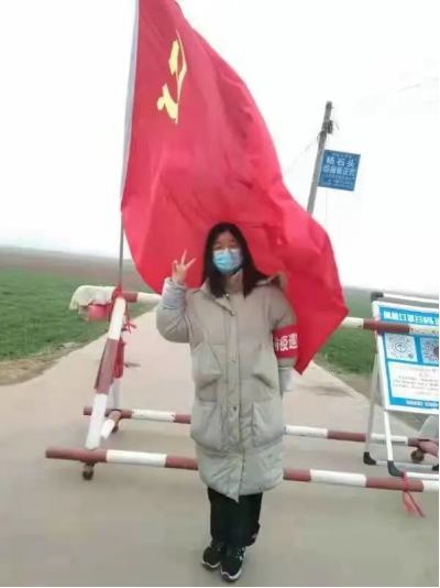 吕佳琪同学返乡后加入村疫情防控服务站的青年志愿服务队,负责在村口卡点处查看进出车辆人员的健康码、行程码,测量体温,登记车辆往返信息,在隔离户门前张贴“隔离责任卡”,对返乡人员进行政策宣讲。