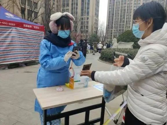 疫情面前不畏惧,志愿服务显担当。赵喜洋同学是河南省商丘市梁园区文化西路振华南院的一名志愿者,她主要负责帮助核酸检测人员扫码登记信息,维持核酸检测现场秩序。