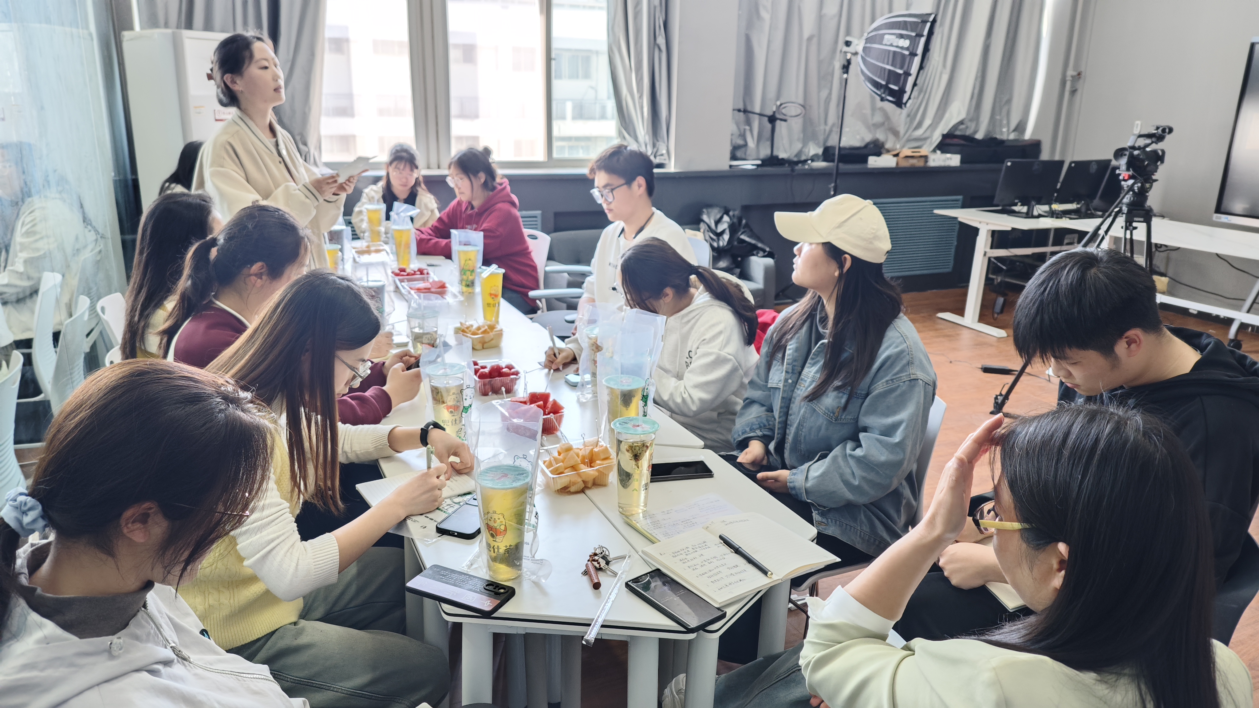 座谈中,高颖指出了近期工作中发现的问题,目前二、五、七年级的主讲教师初次授课,师生磨合度不高,建议通过课前聊天来了解员工,增进师生感情。组内郭鲁豫获得南非树德公司“优秀主讲教师”称号,高颖希望大家要以郭鲁豫同学为榜样,在教学中多出成绩。针对临近下课学员出现躁动情绪,李佳雨认为主讲教师可以通过玩游戏、唱儿歌吸引他们的注意力。她强调,团队管理很重要,主讲教师和助教要记录、总结每节课内容,并建议组员将书法等中国传统文化与课程内容相结合,提高员工积极性。张雪莹说,美国员工汉语基础好,课堂上积极配合主讲教师,但课堂过于活跃,管理效果不佳。马薏荟指出,宣传组正处换届交接阶段,目标驱动、积极性不强,且作为宣传工作负责者,与其他组联系不强,希望加强组别之间的联系,提高小组整体的凝聚力和执行力。