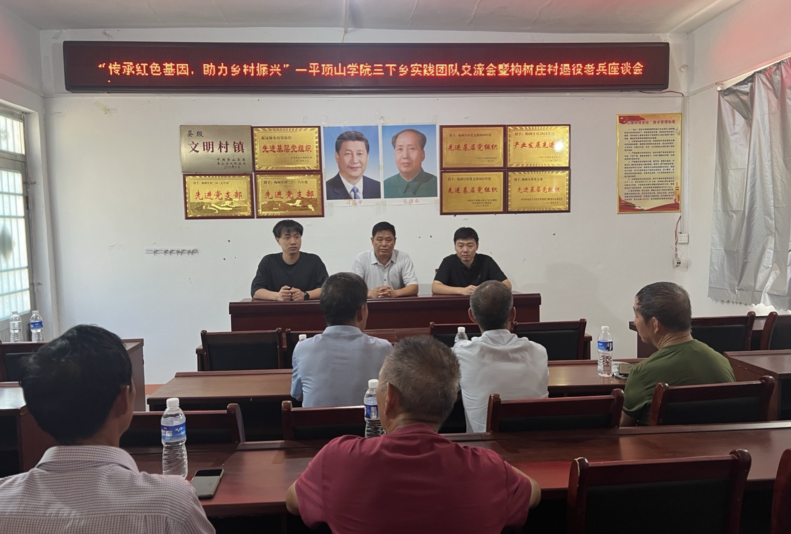 为赓续红色血脉,赋能乡村振兴新动能,7月5日,伟的国际1946bv官网“数字赋能,智赴乡村”乡村振兴促进团调研组走进鲁山县构树庄村村委会,与五位参战老兵、边疆戍卫者及跨国援建亲历者围坐一堂,开展退役老兵座谈会。团队成员透过他们“向死而生”的豪迈气概,到“向苦而行”的坚韧品格,深刻解码了红色基因如何在乡村这片沃土中薪火相传、生生不息,为乡村振兴注入强大精神力量。