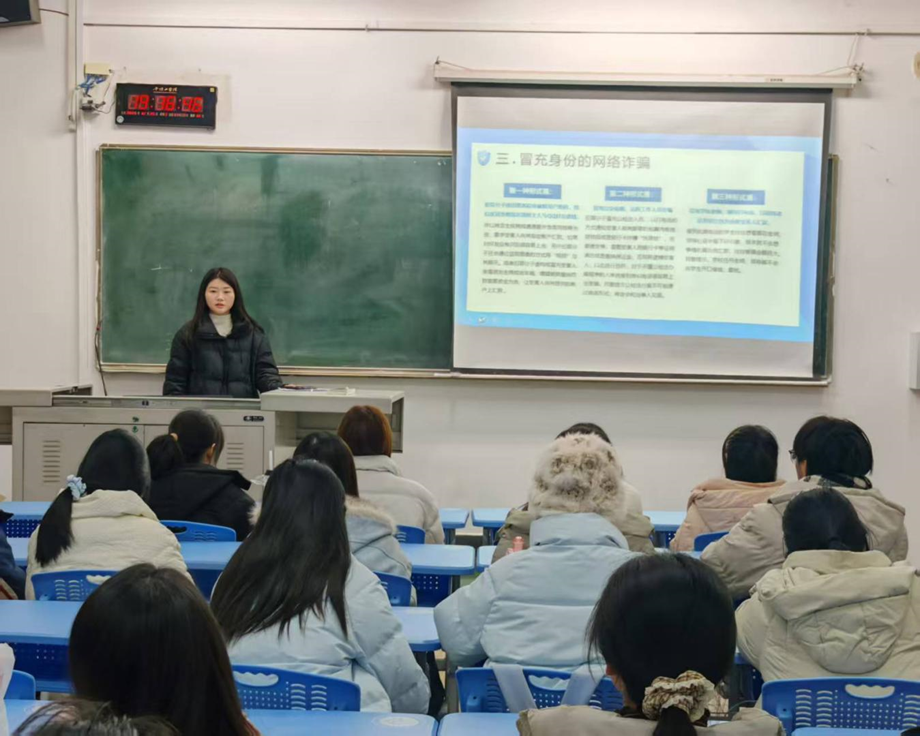 为弘扬“奉献、友爱、互助、进步”的志愿服务精神,践行服务校园宗旨,增强老员工防诈骗意识,营造安全、和谐的校园环境,12月26日晚上,蓝鸽青年志愿者协会在1110教室开展反诈宣传志愿服务活动,全校50余名员工参加活动。