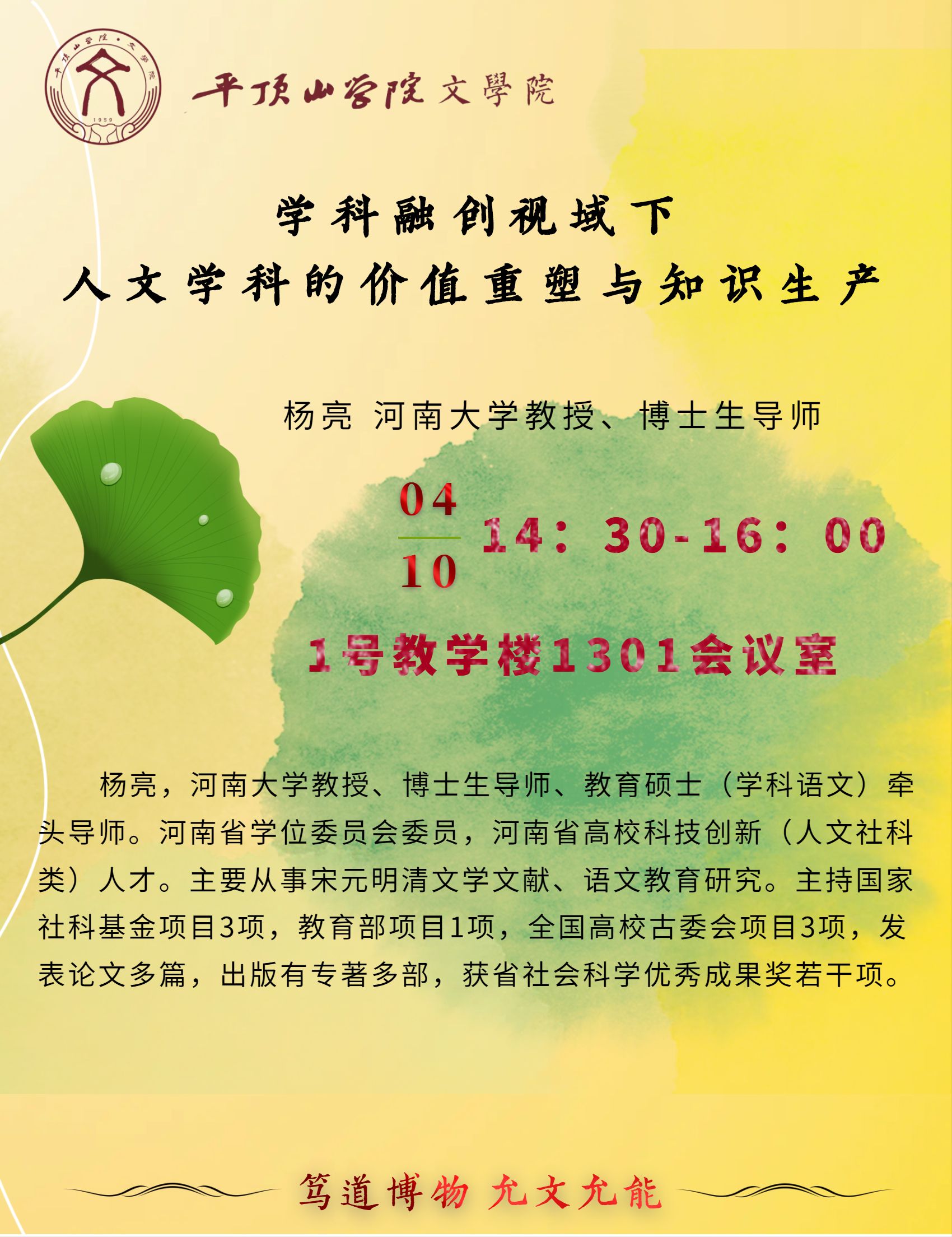 教师发展系列讲座预告 | 4.10 杨亮:学科融创视域下人文学科的价值重塑与知识生产