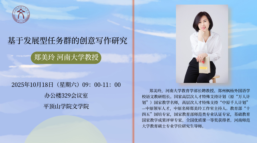 “鼎山讲坛”系列讲座预告 | 10.18 郑美玲:基于发展型任务群的创意写作研究