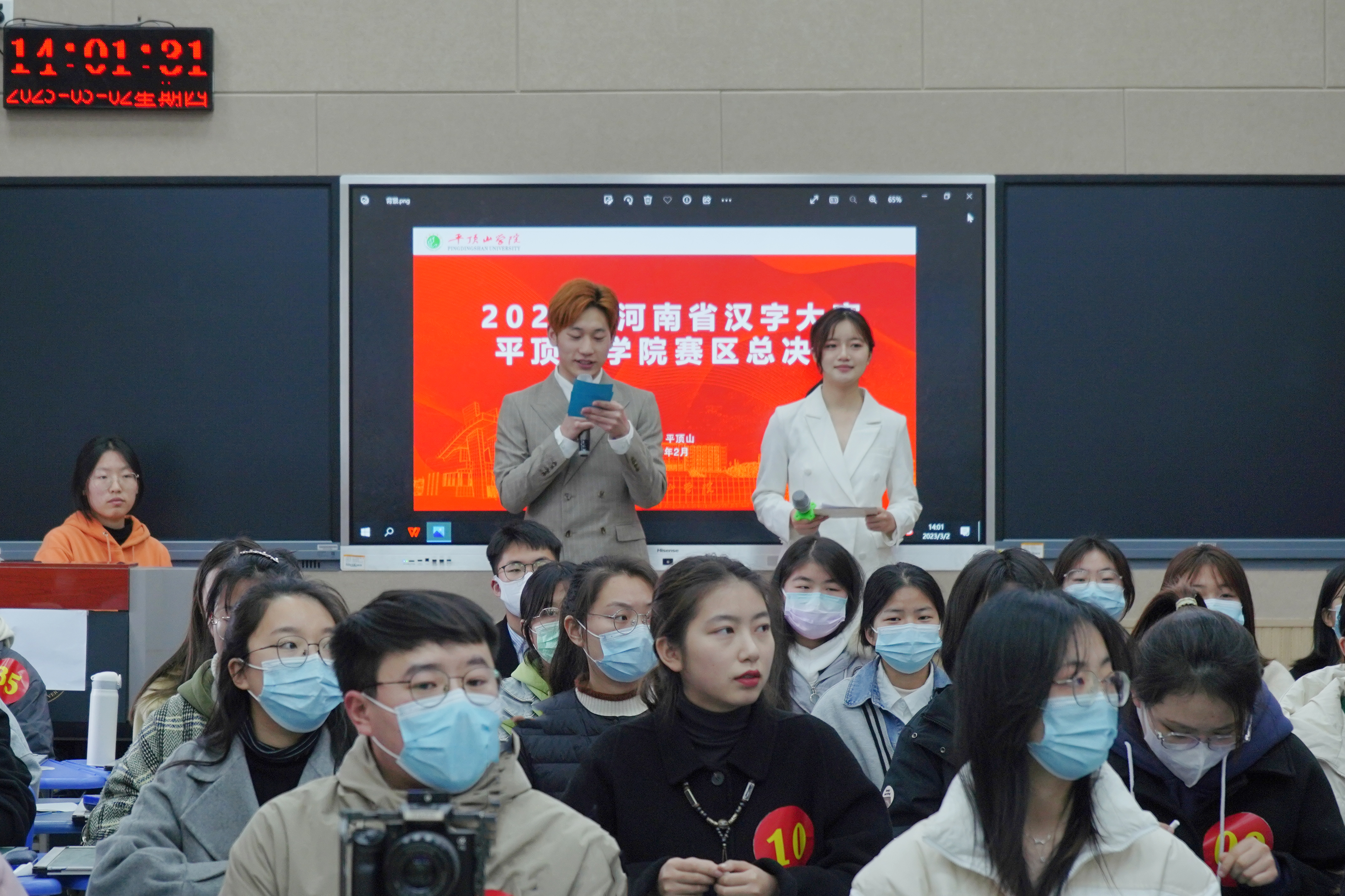 3月2日,由伟的国际1946bv官网承办的2022年河南省汉字大赛伟德国际victor1946官网赛区选拔赛在图书馆203教室举行,来自全校20多个专业的36名选手参加比赛。本次比赛邀请了伏牛山文化圈研究中心主任、新闻与传播公司副经理段纳教授、新闻与传播公司陈建裕教授、伟的国际1946bv官网语言教研室专业教师卢淑芳、刘亚科、刘春萍担任评委。2022年河南省汉字大赛伟德国际victor1946官网赛区选拔赛因疫情推迟到今年上半年举行,为了提升大赛的影响力,大赛组委会联合河南巽视达传媒有限公司,首次采用线下比赛,线上直播的方式进行。