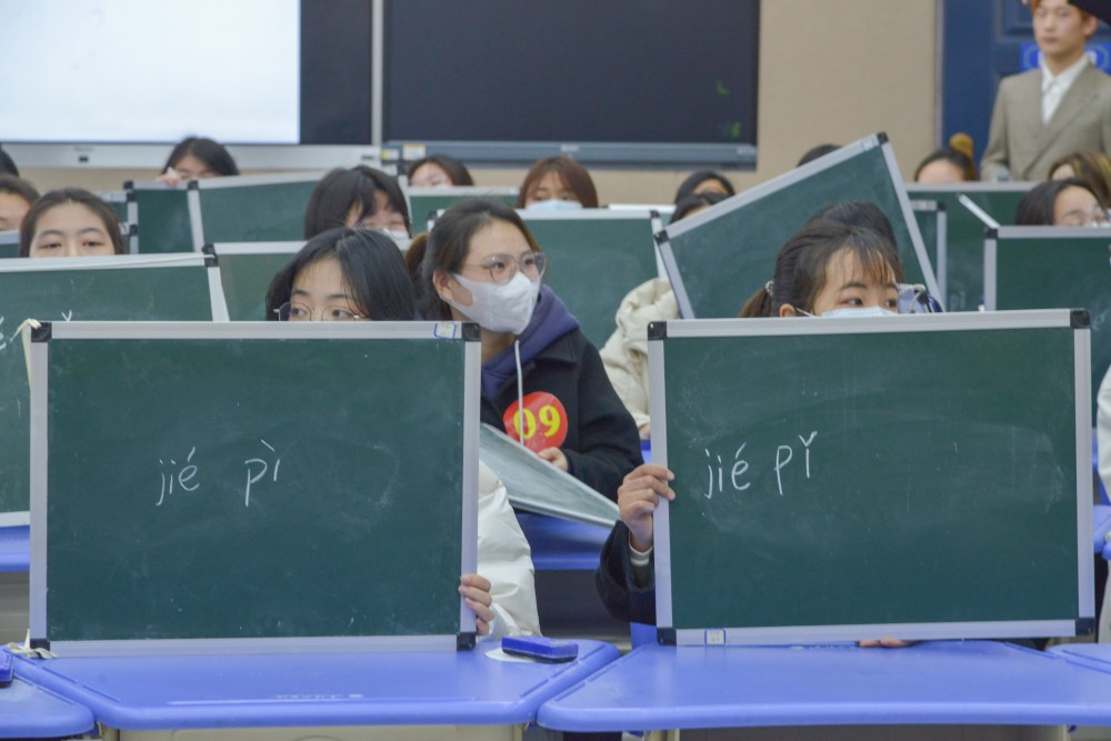本次比赛共分为两轮。第一轮为积分赛,第二轮为抢答赛,各15道测试题,涵盖汉字书写、注音、根据释义判断汉字等。测试题从造字结构、古今词义异同、字词本义及引申义等多方面考察选手们的汉字水平,既结合传统文化又联系现实生活,让选手们在参加比赛的同时感受汉字文化的博大精深。