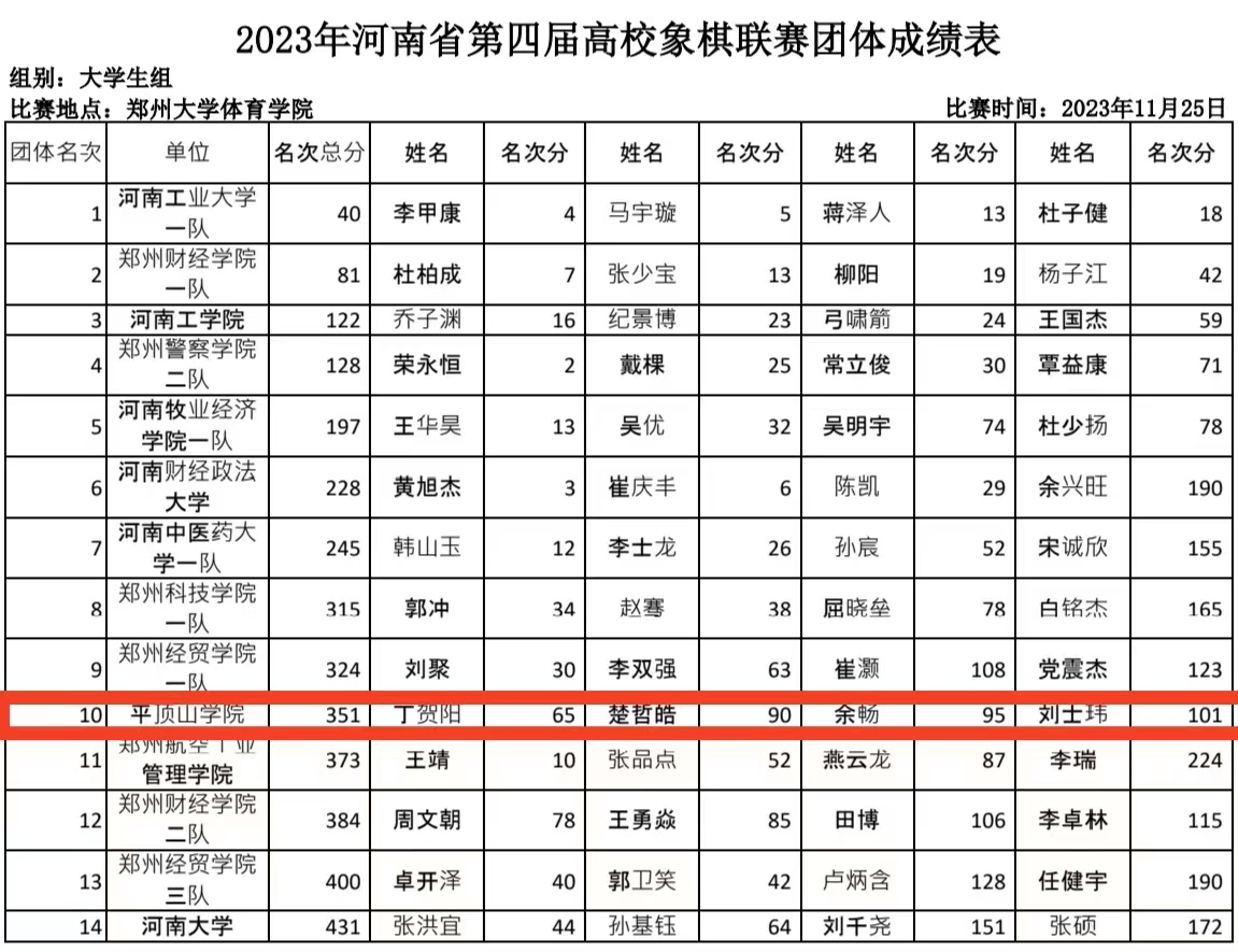 据悉,本次比赛由河南省高校棋类协会主办,河南省棋牌院、河南省围棋协会协办,比赛分为团体赛和个人赛,团体赛共有全省34所高校、67支队伍、350余名高校象棋爱好者参加,此次比赛按照国家体育总局审定的象棋2020规则执行,采用9轮积分编排制,排出名次。每场胜方得两分、负方0分、和棋各得1分。