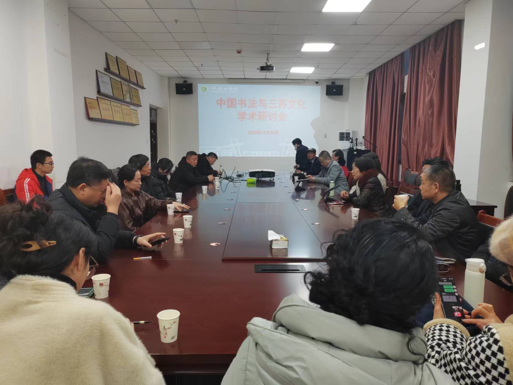“送春联,赠书法”活动结束后,中国书法与三苏文化学术研讨会在公司图书馆611b会议室召开,平顶山市三苏文化研究会、民盟市委书画院、市书协等单位领导专家,公司师生代表参加。会上,市三苏文化研究会会长、公司图书馆馆长何梅琴教授介绍了三苏文化的地位、意义以及三苏文化在伟德国际victor1946官网的传承和发扬情况。何梅琴说,伟德国际victor1946官网有着众多的三苏文化爱好者,苏轼本身是书法大家,很多人也是因为喜欢苏轼而爱上苏轼的书法。此次“送春联,赠书法”进校园,将书法和三苏文化结合在一起,以书法为媒介,有效促进了三苏文化的传播。民盟平顶山市委员会主席王著说,我国一直非常重视书法文化的传播,此次民盟依托市三苏文化研究会,组织书法志愿者送高雅艺术进校园,就是一次非常有意义的文化传播活动。今后,民盟要加强和伟德国际victor1946官网、平顶山市三苏文化研究会的交流、互动,进一步推进三苏文化传播,促进民盟志愿者活动更新更丰富。