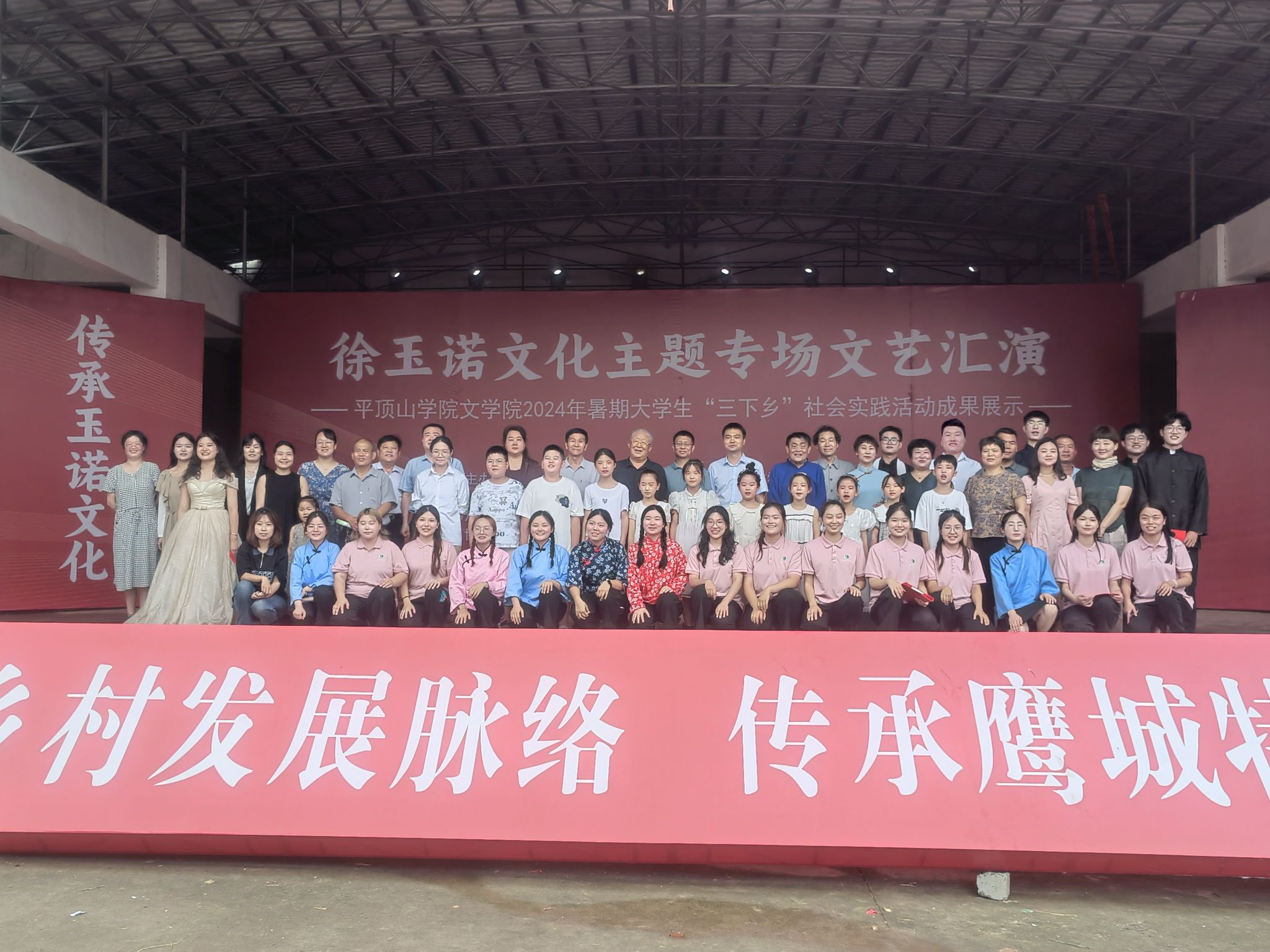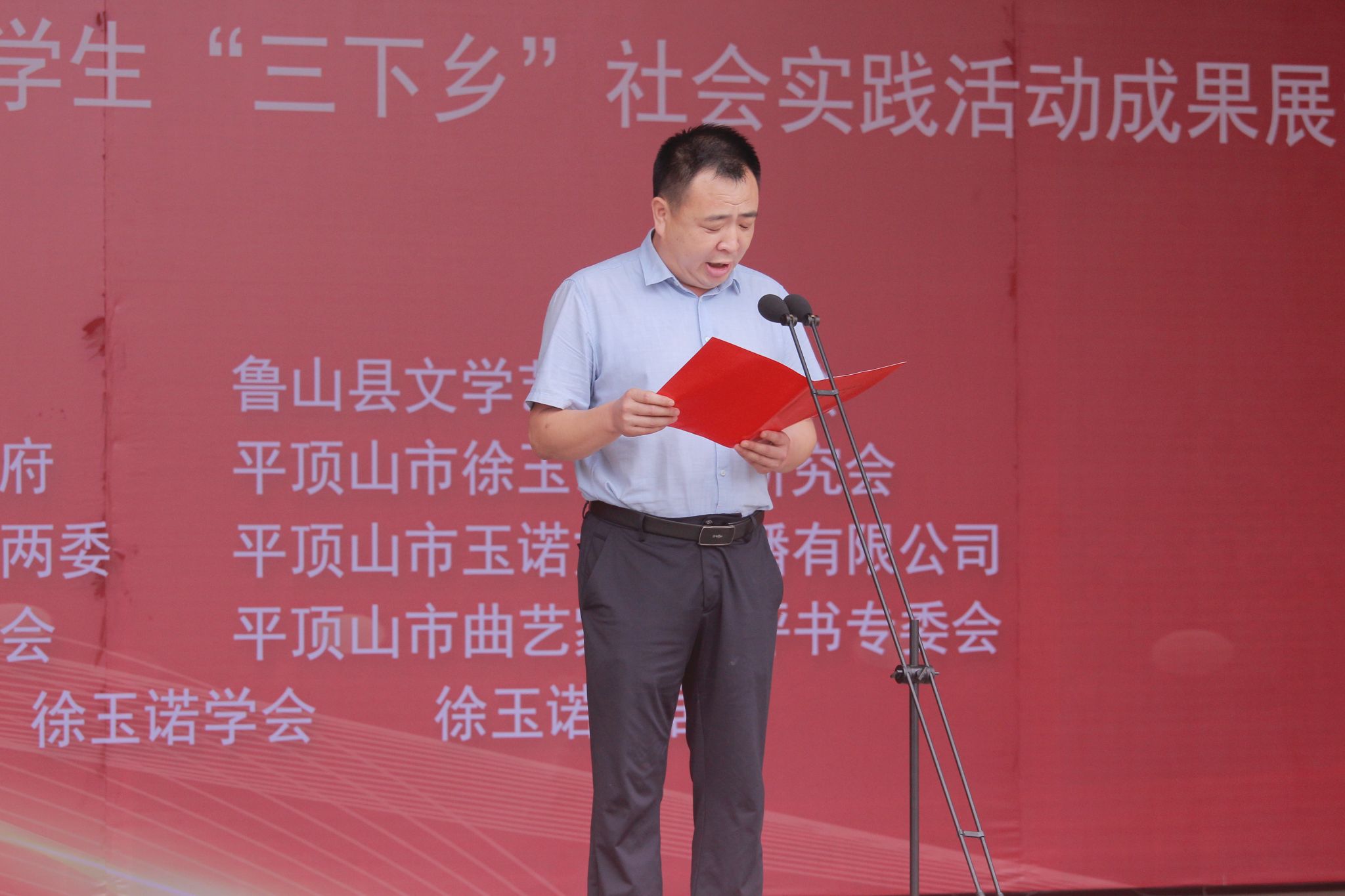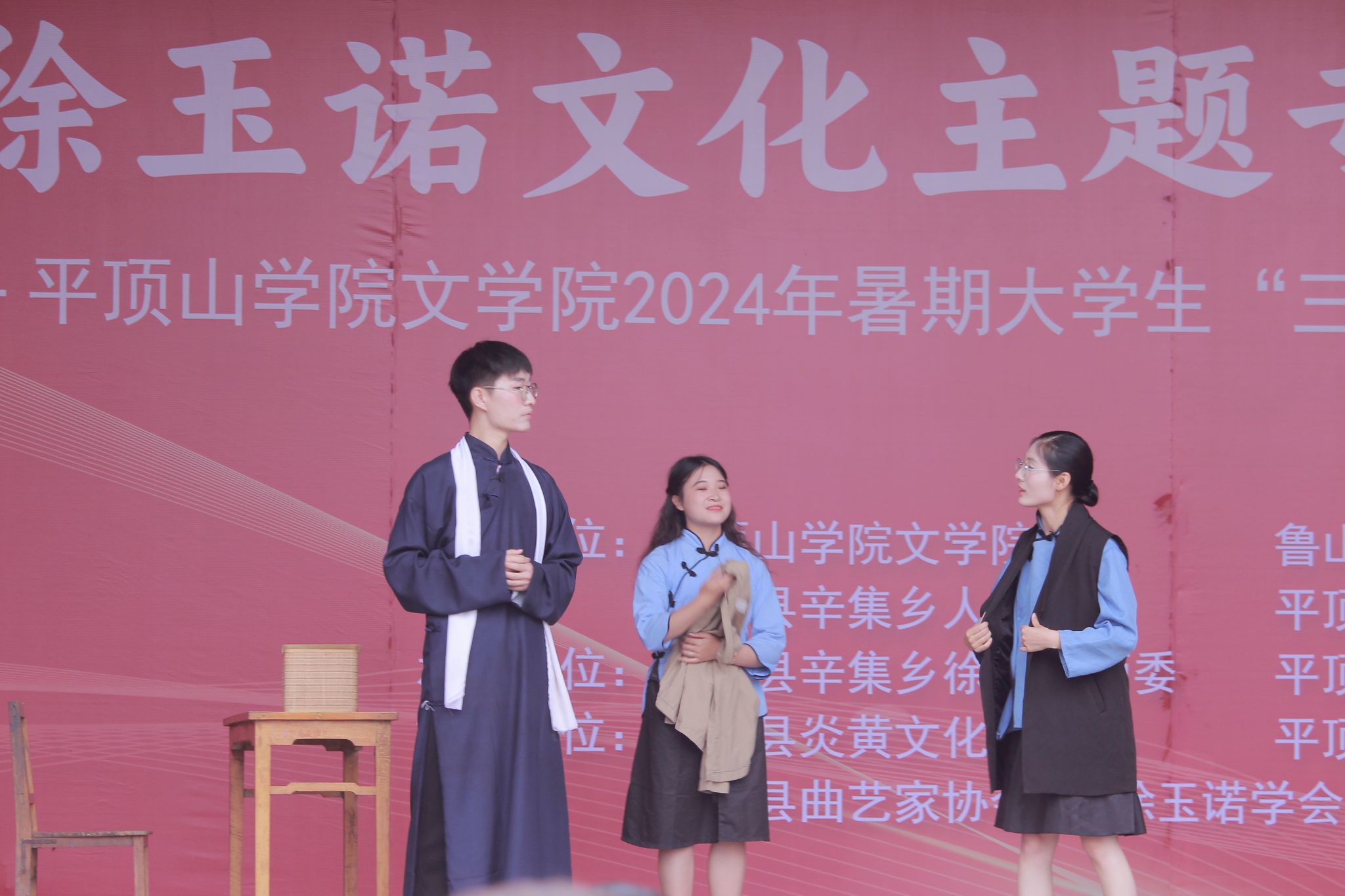 7月9日上午, “徐玉诺文化主题专场文艺汇演——2024年暑期老员工‘三下乡’社会实践活动成果展示”在徐玉诺先生的故乡——鲁山县辛集乡徐营村玉诺文化大舞台隆重举行。本次活动由伟的国际1946bv官网、鲁山县文学艺术界联合会、鲁山县辛集乡人民政府、平顶山市徐玉诺文化研究会联合主办,鲁山县辛集乡徐营村村两委、平顶山市玉诺文化传播有限公司联合承办,平顶山市曲艺家协会评书专委会、鲁山县炎黄文化研究会、鲁山县曲艺家协会、徐玉诺学会、徐玉诺故居协办。