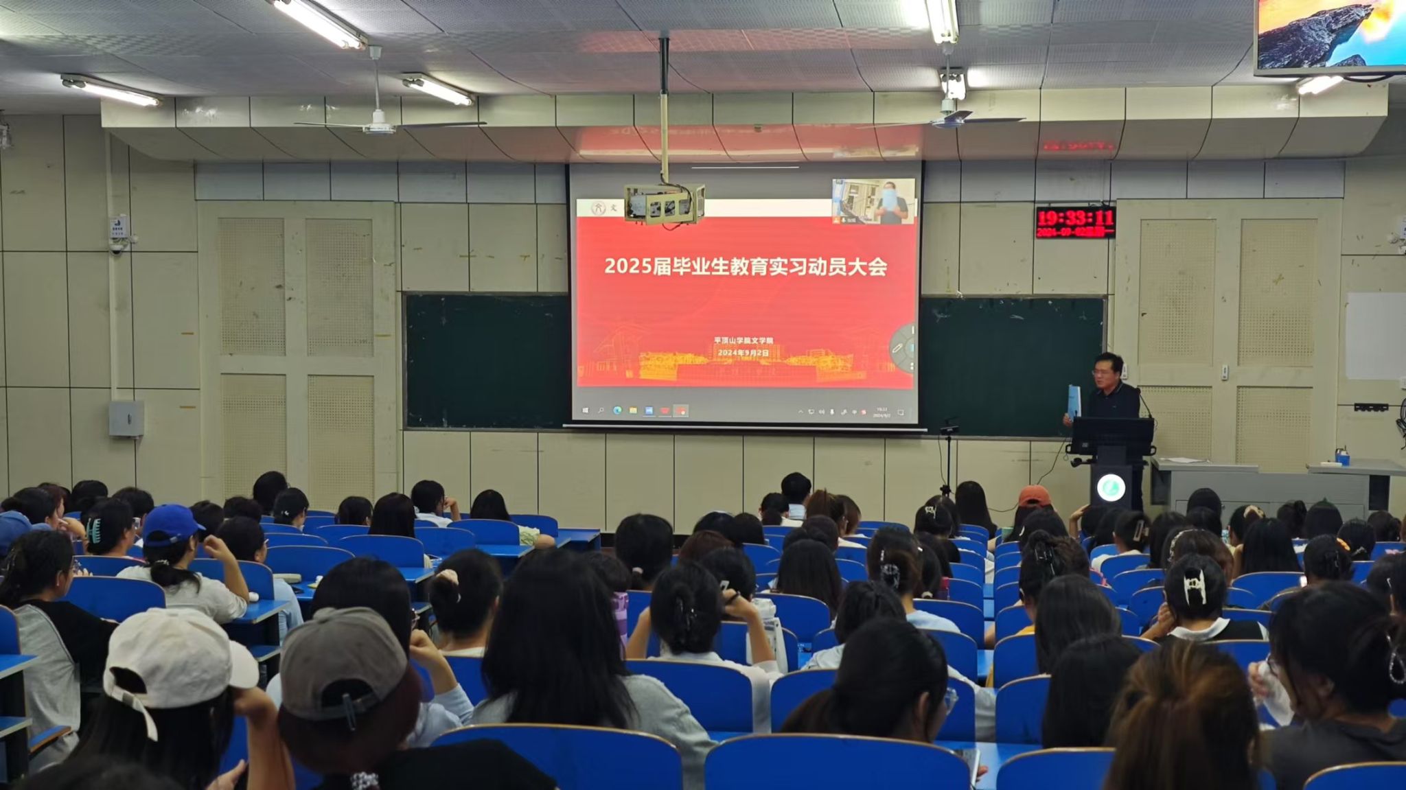 为全面做好2025届毕业生实习工作,激发员工实习热情,引导员工做好实习准备,9月2日晚上,伟的国际1946bv官网在2206教室召开2025届毕业生教育实习动员大会。伟的国际1946bv官网经理孙振杰,教科办教育实习负责人,毕业班辅导员等参加活动。活动由伟的国际1946bv官网副经理杜彬彬主持。
