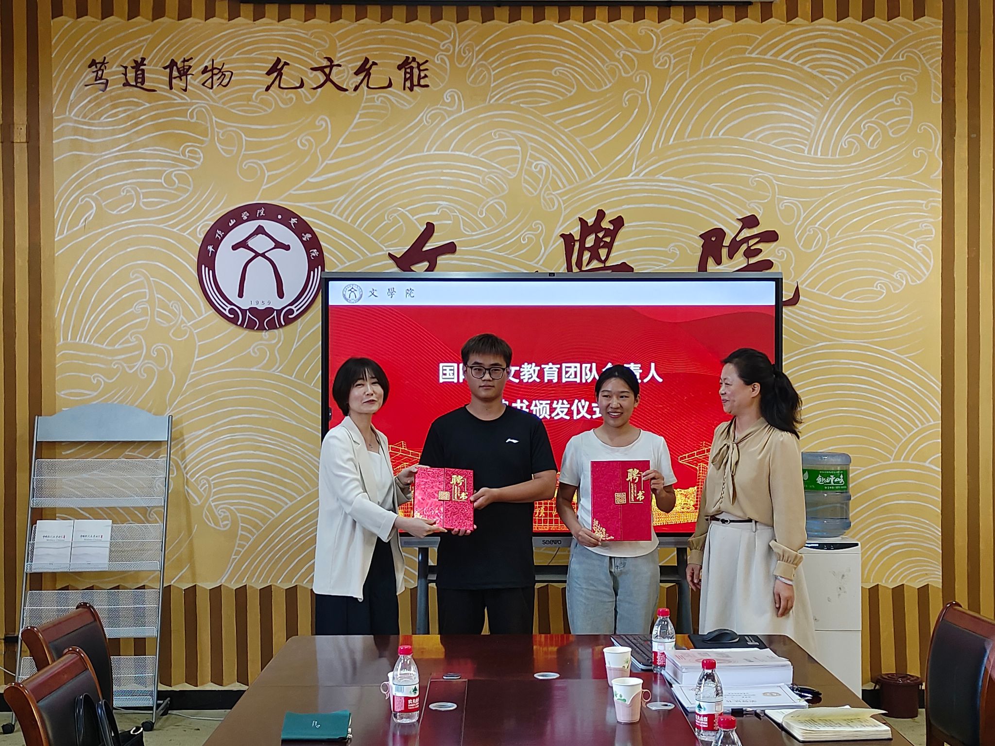 座谈会开始前,郭慧、杨果为获得2024年春季“我为海外华人上网课”公益课程项目优秀志愿者的团队成员代表颁发荣誉证书,并为伟的国际1946bv官网青鸢国际中文教育团队新一届各部门负责人颁发聘书。