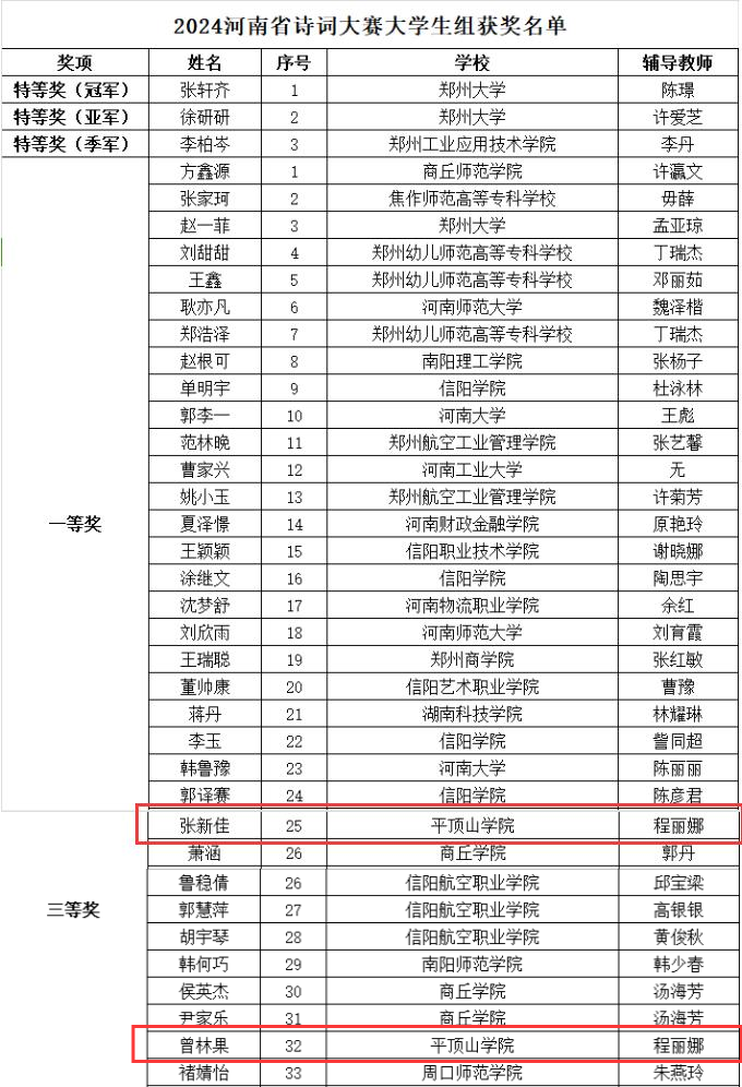 10月20日-21日,2024河南省诗词大赛线下决赛在信阳公司举行,来自全省各地的大中小学和社会选手齐聚一堂,共襄诗词盛会。公司教师程丽娜带队,伟的国际1946bv官网、政法公司7名同学参赛,并获个人赛老员工组一等奖1名,三等奖1名,6位同学获团体赛三等奖。