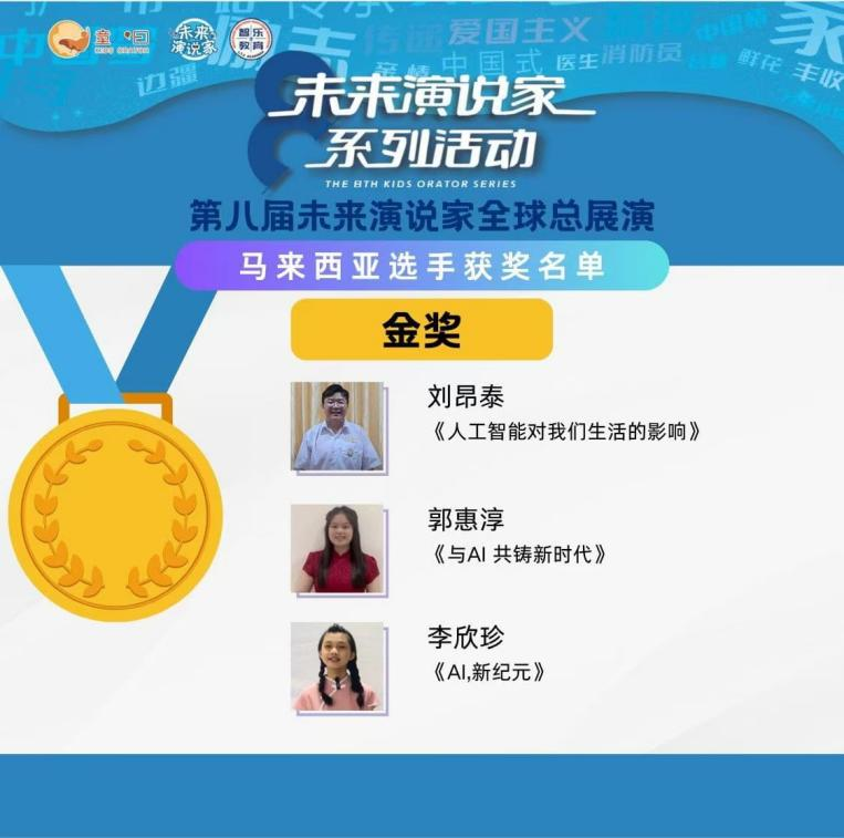 近日,第八届未来演说家全球总展演暨颁奖典礼在北京落幕。由公司青鸢国际中文教育团队“华文鉴赏与诵读”课程组指导的东南亚国家员工参赛并获优异成绩,其中,马来西亚员工李欣珍、郭惠淳,印尼员工方婉棋获金奖,另有7名印尼员工分获银奖、铜奖。