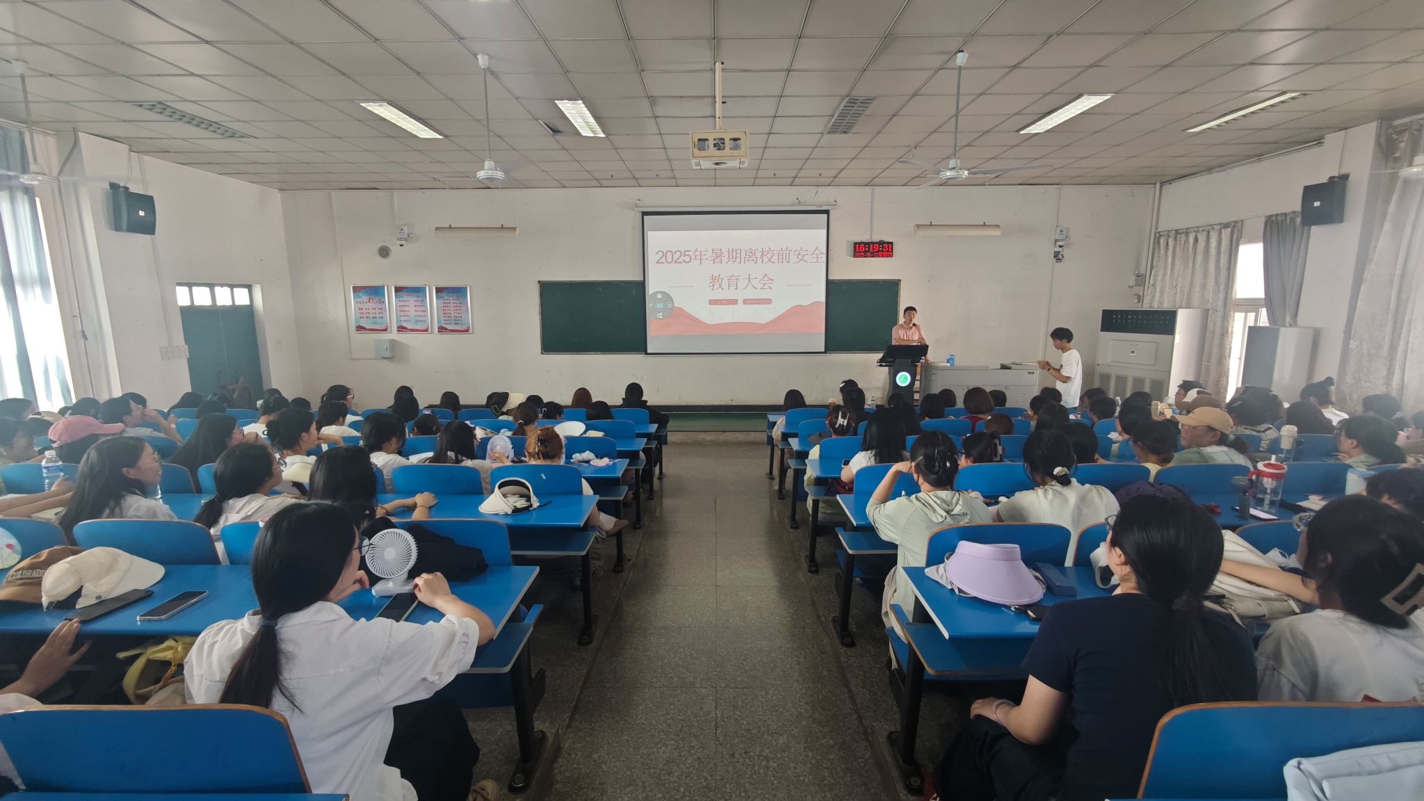 聚焦有效编织“人身安全防护网”,张驰为2022级全体员工作了2025年上半年离校前的安全教育。他对同学们提出了三点要求,第一,暑期出行要重视人身安全,遵守交规、拒绝违规出行;第二,要提升防诈骗意识,保护好自己的金钱财物;第三,要拉紧暑期防溺水安全绳,禁止私自前往无安全保障水域游玩。