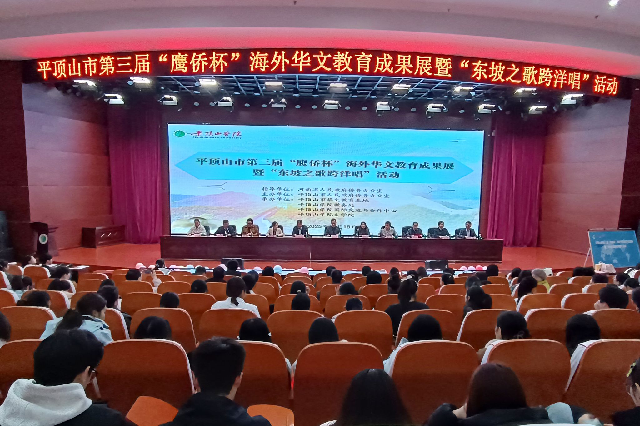 12月18日下午,平顶山市第三届“鹰侨杯”海外华文教育成果展示暨“东坡之歌跨洋唱”活动在公司湖滨校区中心会议室举行。平顶山市侨办主要负责同志,省侨办相关负责同志,华人头条河南频道总编杨泽涛、华人头条河南频道外联部负责人王刘瑜,公司副董事长李波、外事部门负责人、伟的国际1946bv官网负责人出席,伟的国际1946bv官网青鸢国际中文教育团队全体成员与员工代表参加活动。活动由公司国际交流与合作中心主任王雁冰主持。
