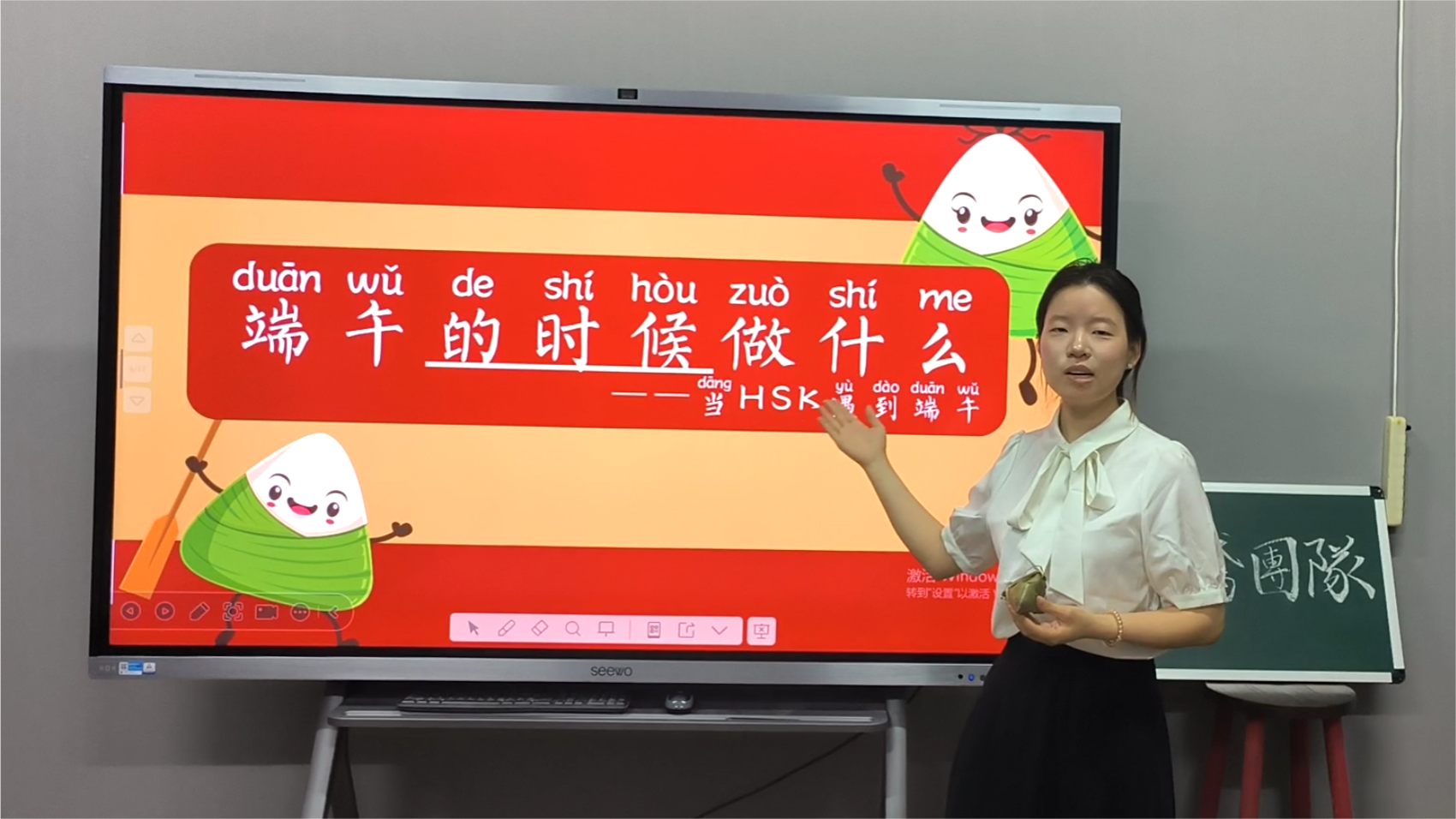 2023级汉语国际教育专业员工李佳雨在为印度尼西亚学员讲授中文课程(获奖者供图)