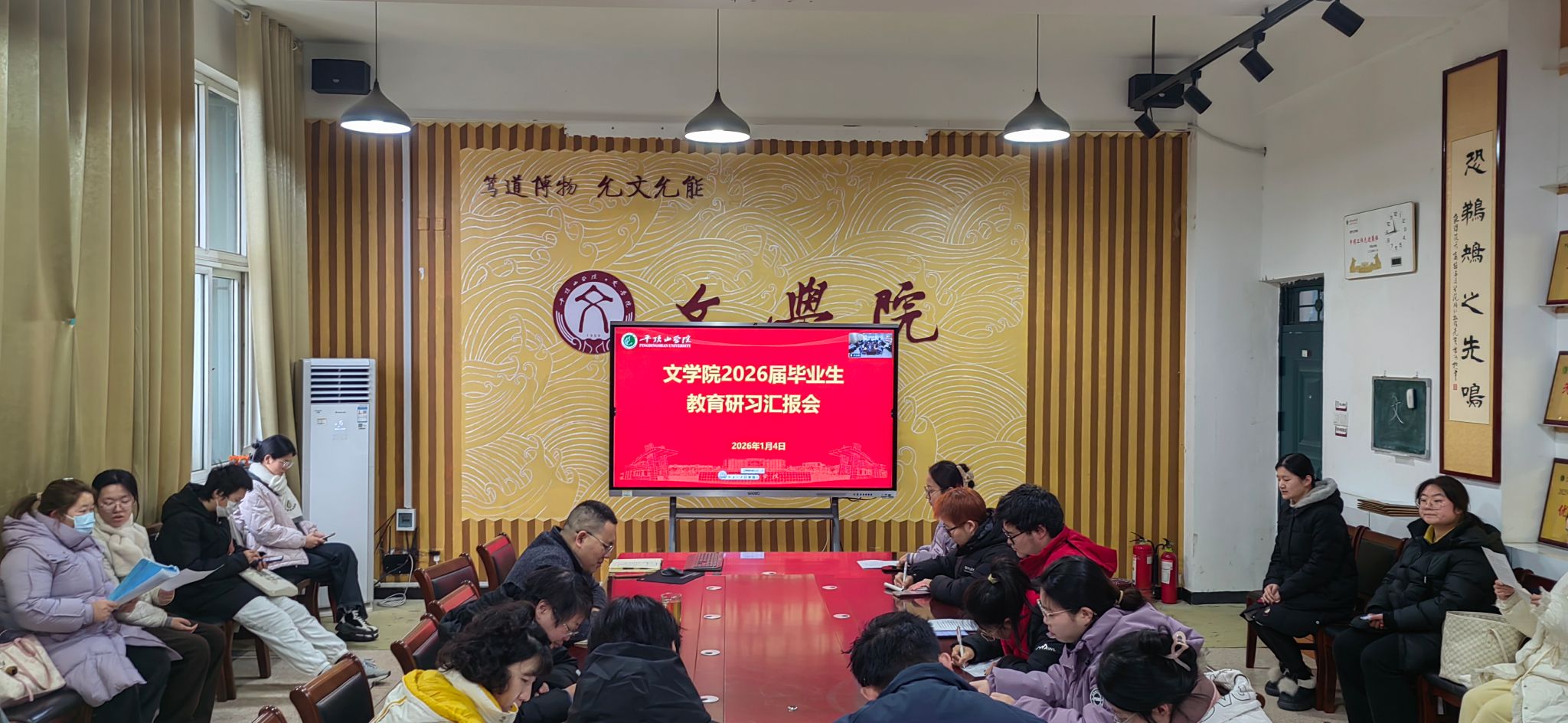 1月4日上午,伟的国际1946bv官网在1301会议室举办2026届毕业生教育研习汇报会。伟的国际1946bv官网副经理杜彬彬,专业教师代表赵晓婕、高冠琳、朱玉雯及2026届毕业生代表30余人参加活动。