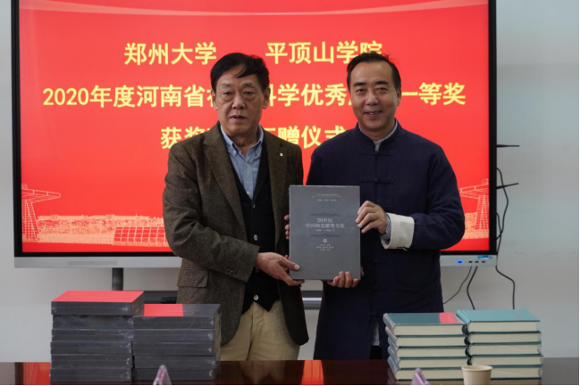 刘志伟代表郑州大学接受赠书(摄影/刘浩杰)