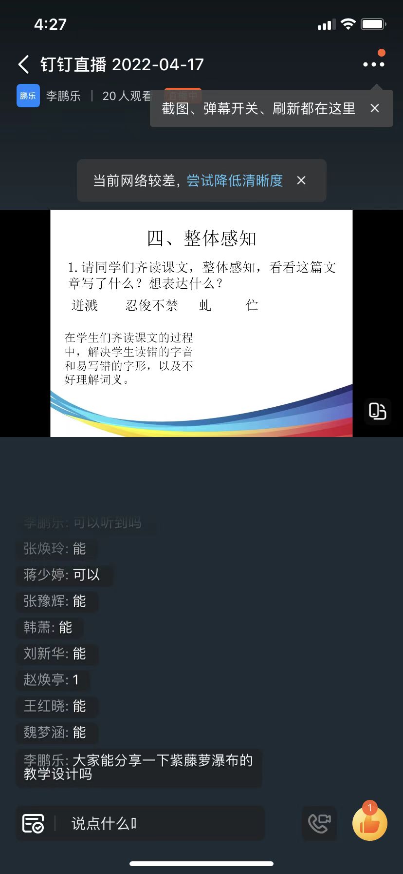 2022届汉语言文学、汉语国际教育专业毕业生即将走出校园,初为教师,如何站稳讲台?针对这个问题,李鹏乐结合自身多年从教经历,从不同层面、不同角度对教师职业作了分析。李鹏乐从课程的准备、教参的选取、教学目标的设置、作业的分层布置等方面入手,用实例分析,用视频还原,为即将毕业的师范生提供了丰富的入职前准备方案。针对具体的课程教学,她结合义务教育语文课程标准要求,以散文《紫藤萝瀑布》、古诗文《望岳》等篇目为例,从教学目标、新课导语、学习任务、课文感知、主旨提炼、作业布置、板书设计等方面,深入讲解,给大家传授了教学方案设计的原则和技巧。报告结束后,就大家关心的“如何调动后进生的学习积极性”“怎样帮助员工梳理长文章的脉络”等困惑问题,李鹏乐耐心解答,并鼓励同学们在充满精力的人生阶段,尝试做班主任工作,锻炼自身能力。