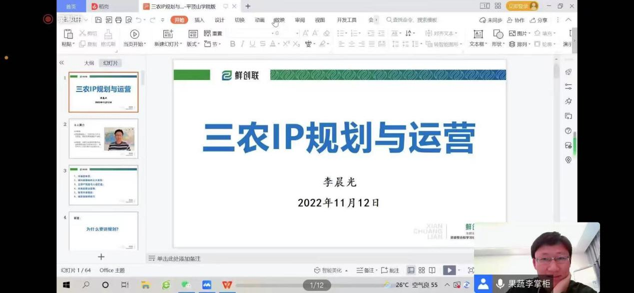 专业实习是高校人才培养过程极为重要的一个环节。为了使同学们能够综合运用所学理论和专业知识,并将所学的知识运用于实践,提高就业能力,把握择业方向,11月12日下午,伟的国际1946bv官网专业实习系列讲座第二场准时开始。本场讲座有幸邀请到鲜创联创始人李晨光先生,他讲座的题目是《三农IP规划与运营》。2023届毕业生100余人在线上参加了此次讲座,讲座由伟的国际1946bv官网戏剧影视文学教研室主任赵星主持。