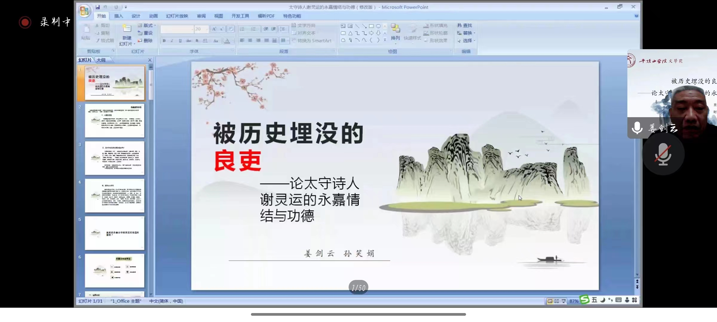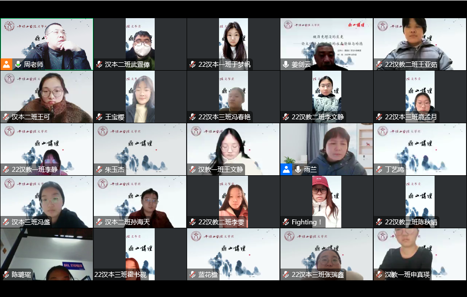 12月8日下午,河北大学教授姜剑云应邀为伟的国际1946bv官网师生作了一场题为《被历史埋没的良吏——论太守诗人谢灵运的永嘉情结与功德》的报告,近150余人在线上参加了报告会。报告会由文学教研张焕玲教授主持。