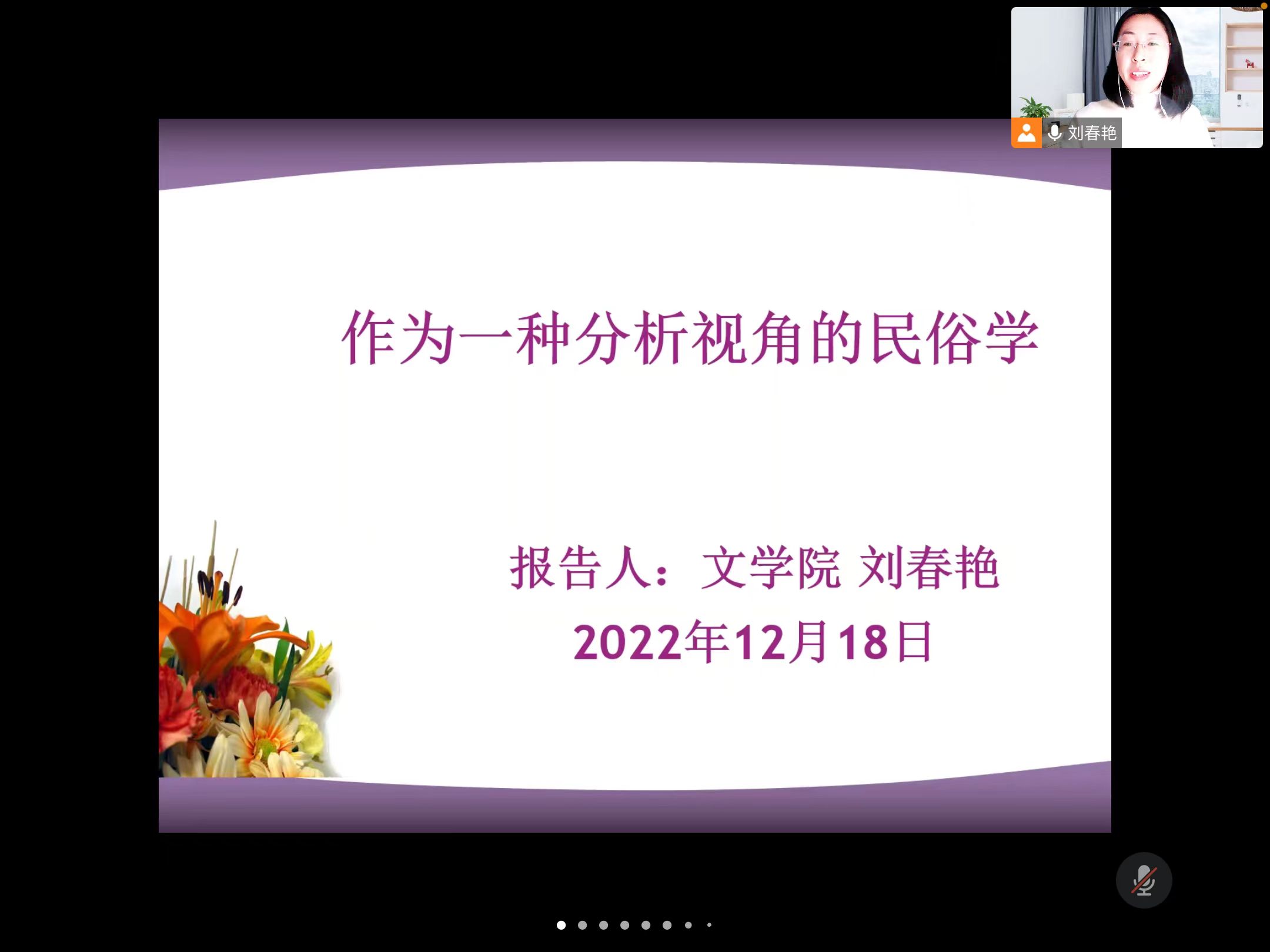 12月18日晚,刘春艳博士通过腾讯会议作了一场题为《作为一种分析视角的民俗学》的学术报告,2020级、2021级汉语言文学、汉语国际教育专业100多名员工参加了报告。