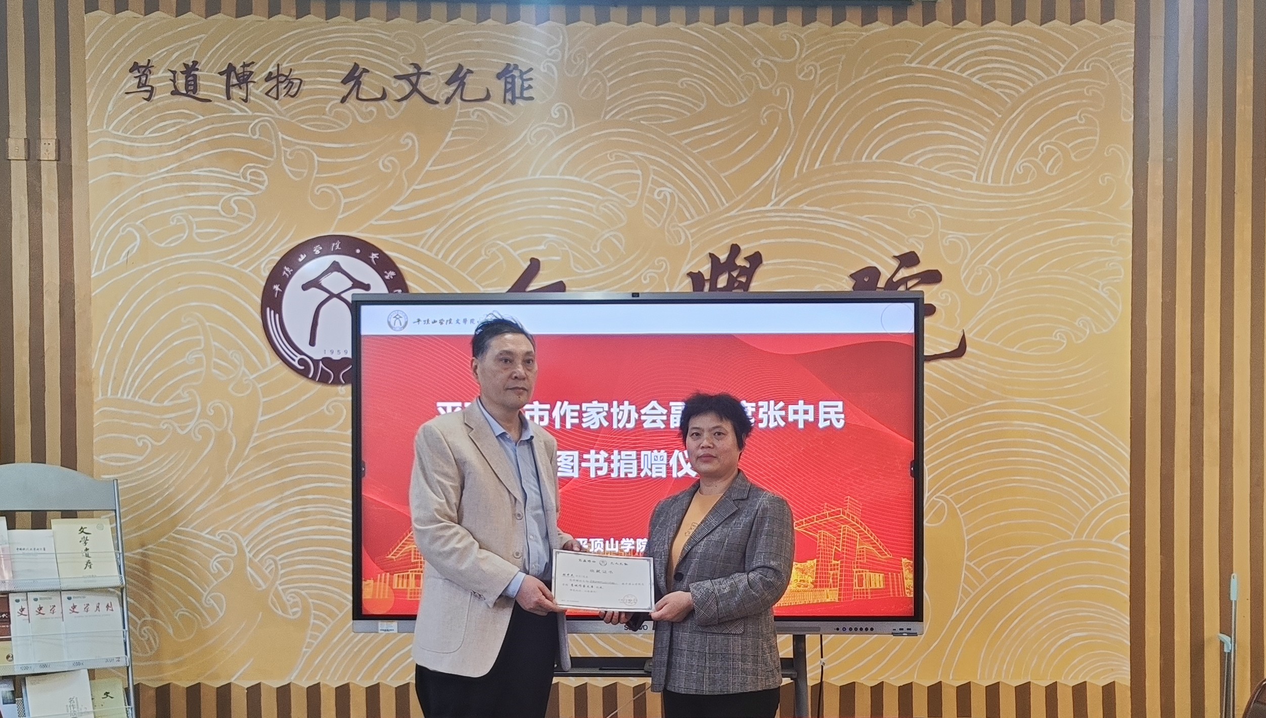 报告开始前,平顶山市作家协会副主席张中民图书捐赠仪式在公司1301会议室举行,张中民向伟的国际1946bv官网“鹰城作家文库”赠送其新近出版的长篇小说《远方有多远》,短篇小说集《奔跑的蚂蚁》,伟的国际1946bv官网副经理赵焕亭向张中民颁发了作品收藏证书。