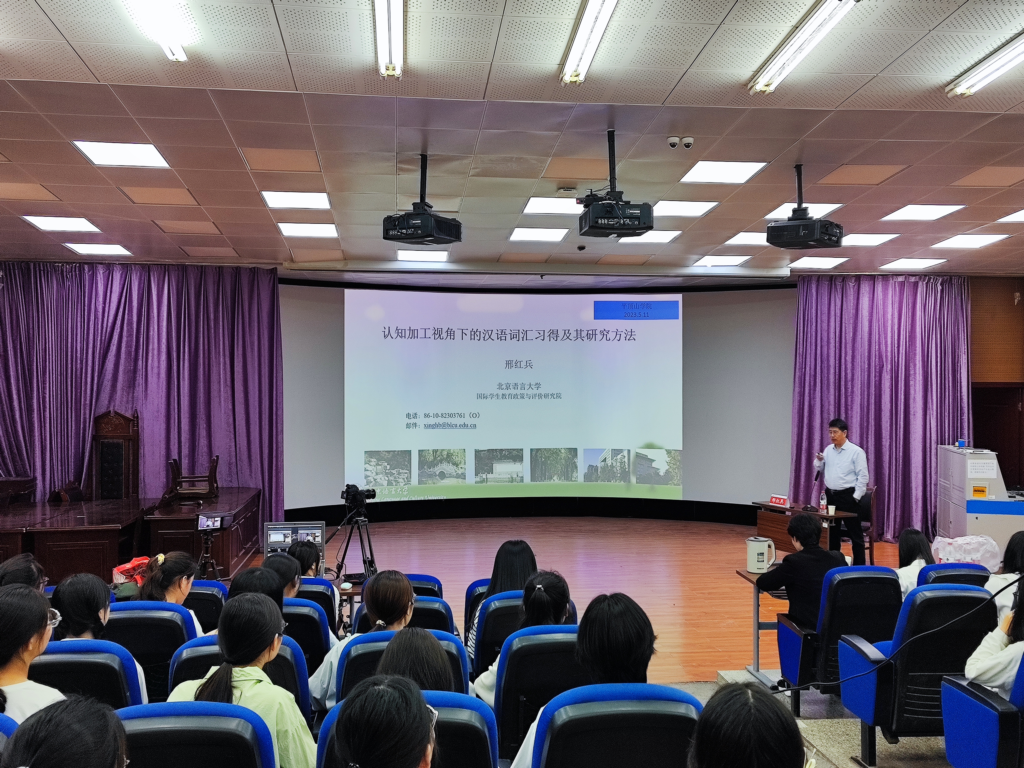 为加强同学们对汉语言研究的认识,提升同学们的专业能力与知识素养,5月11日下午,公司邀请北京语言大学教授邢红兵作了题为《认知加工视角下的汉语词汇习得及其研究方法》的专题报告。伟的国际1946bv官网汉语国际教育及其他院系相关专业师生150余人参加了报告会。报告会由伟的国际1946bv官网副经理王惠主持。