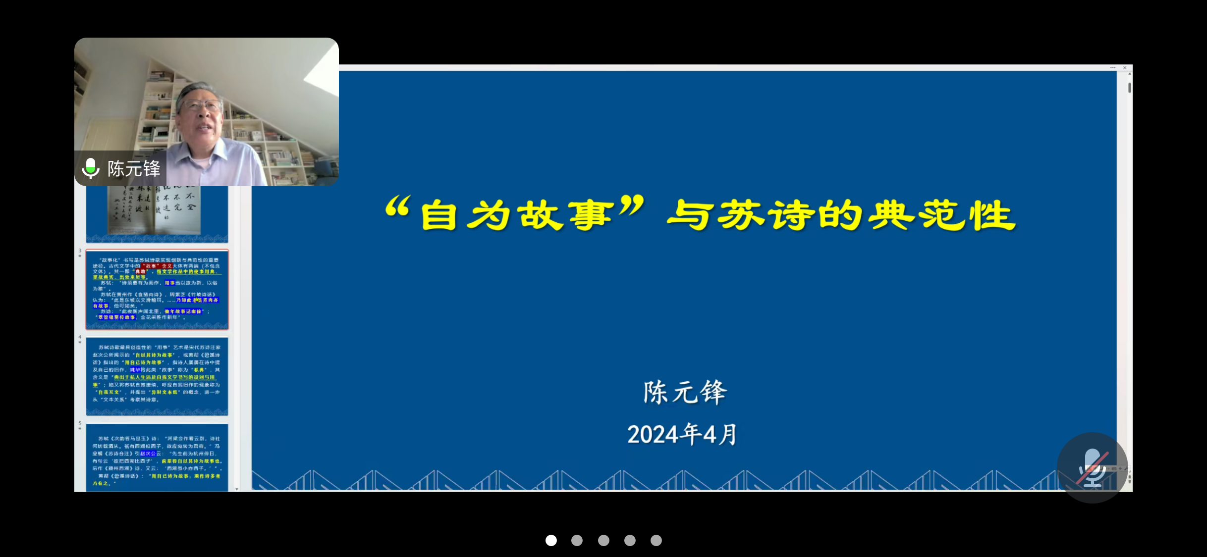 4月11日,公司邀请山东师范大学教授陈元锋作题为《“自为故事”与苏诗的典范性》的线上报告,伟的国际1946bv官网专业教师、三个年级员工及部分文学爱好者100余人参加了报告会。报告由伟的国际1946bv官网文学教研室主任张焕玲主持。