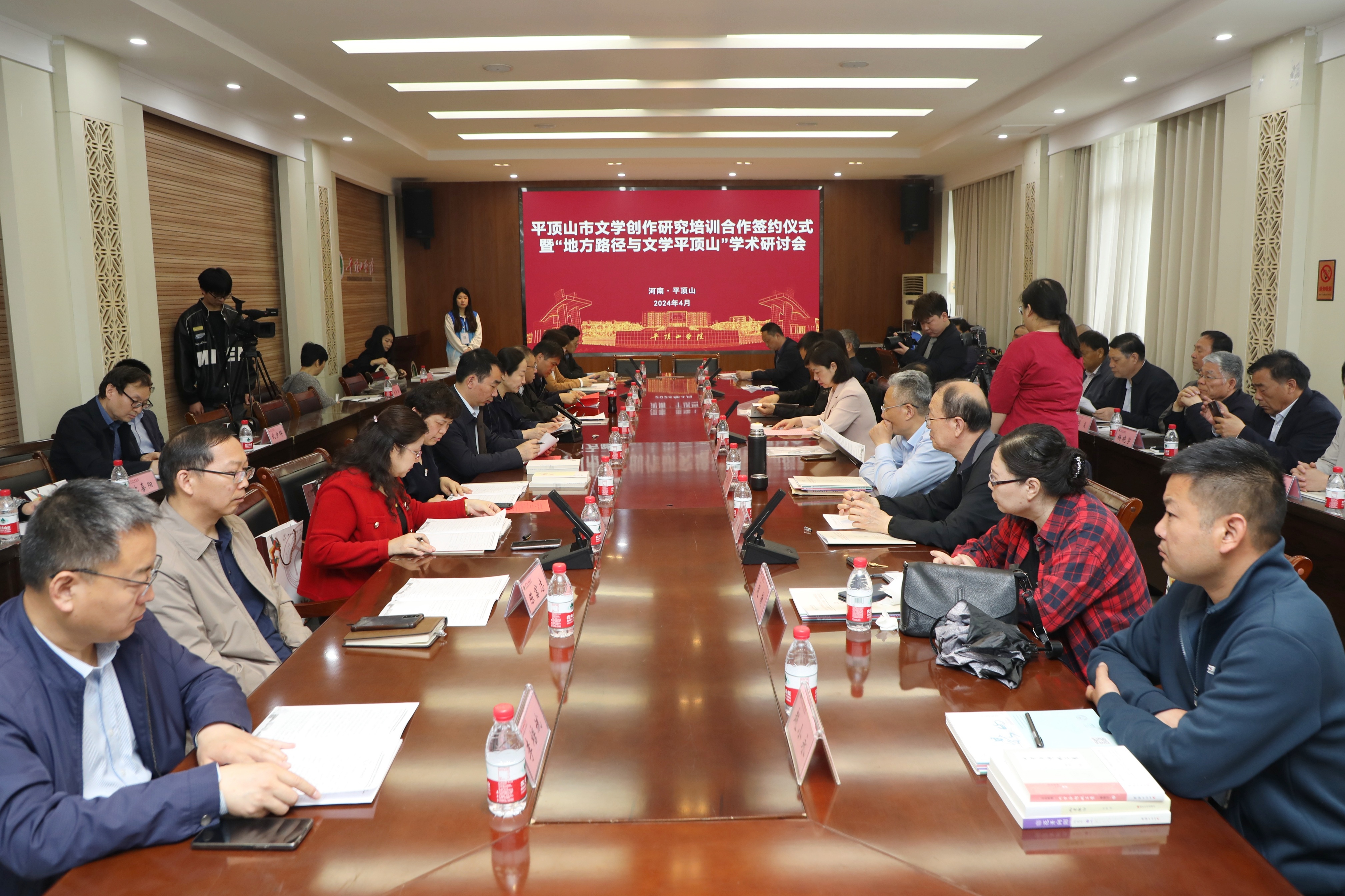 4月19日上午,由中国现代文学研究会、河南省文艺评论家协会、伟德国际victor1946官网、平顶山市文学艺术界联合会主办,伟的国际1946bv官网、伏牛山文化圈研究中心,平顶山市作家协会承办的“平顶山市文学创作研究培训合作签约仪式暨‘地方路径与文学平顶山’学术研讨会”在公司举行。来自北京师范大学、郑州大学、河南大学、周口师范公司等高校以及平顶山市、伟德国际victor1946官网的40多位专家学者共聚一堂,围绕平顶山市文学创作与研究、地域文化研究与发展等话题开展研讨。公司公司党委书记申自强主持了上半场的签约仪式,伟的国际1946bv官网经理孙振杰主持了下半场的“地方路径与文学平顶山”学术研讨会。