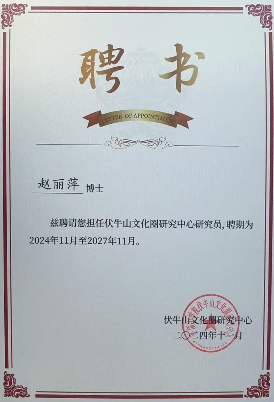 11月26日下午,伏牛山文化圈研究中心研究人员聘任仪式在公司行政楼403会议室举行,公司党委书记、伏牛山文化圈研究中心智库负责人、首席专家华小鹏出席并讲话。在会上,科研处处长李光喜宣布了聘任13位博士为中心研究员的通知,公司青年教师赵丽萍博士名列其中。
