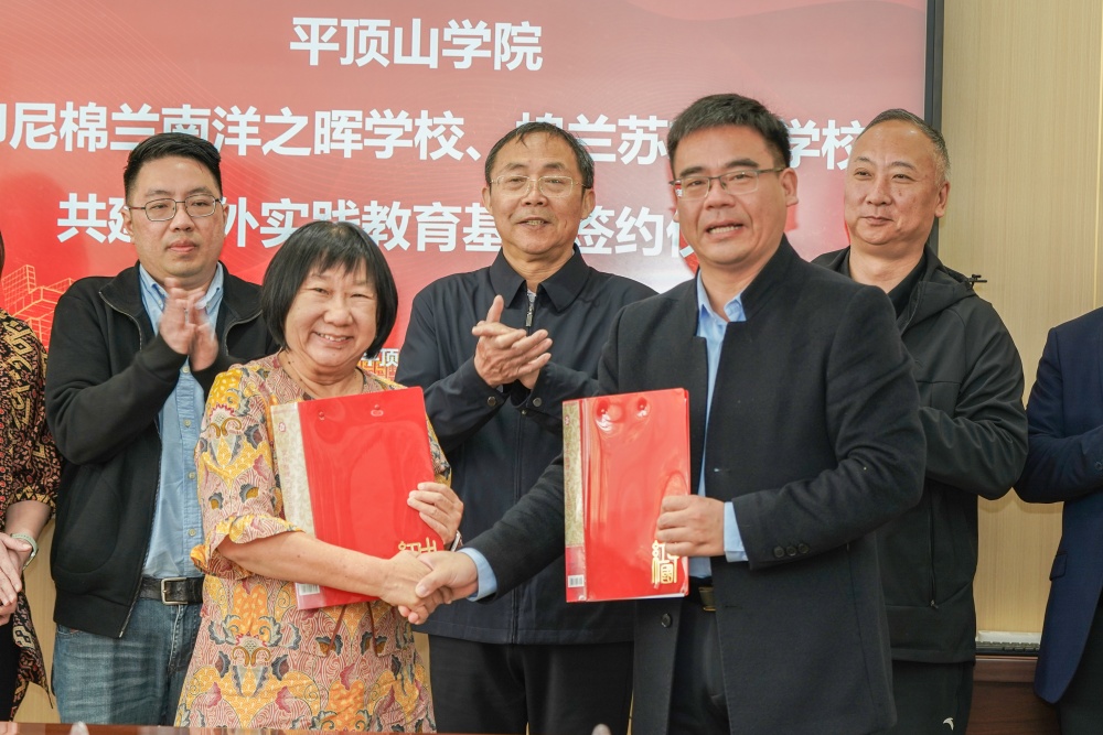 会上,伟德国际victor1946官网与印尼华裔中华乐趣学苑签署了战略合作框架协议。公司伟的国际1946bv官网还分别与印尼棉兰南洋之晖公司和印尼棉兰苏东牧公司签订了共建海外实践教育基地协议。随后,双方与会人员就龙狮、陶瓷、中医康养等领域的合作,以及公司在印尼开展境外办学,开设“东坡书院”“陶瓷作坊”等“中文+”项目进行了深入探讨,并在很多方面达成了共识。