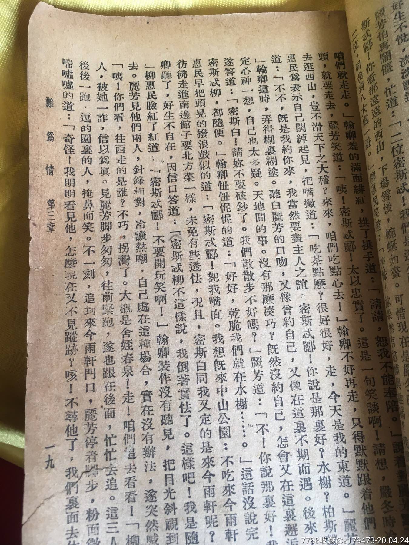 1946年由文兴书局、正气书局联合出版的小说《难为情》的一页书影